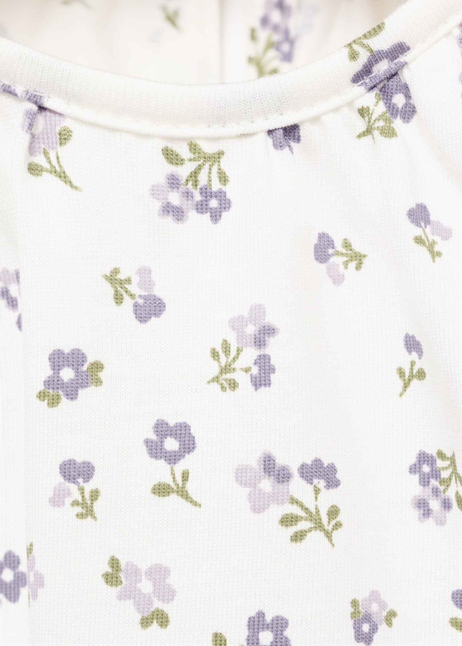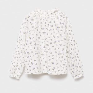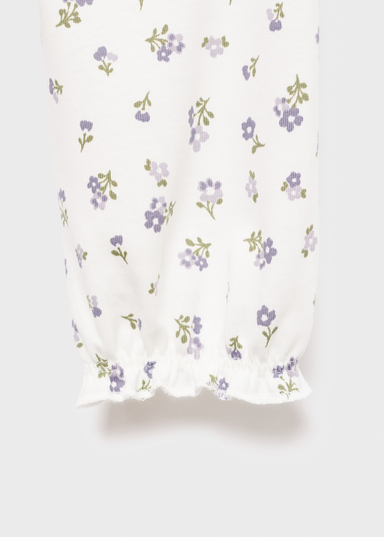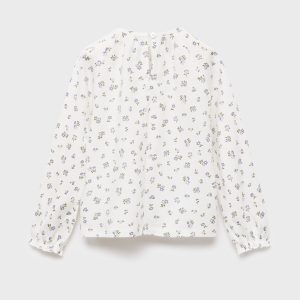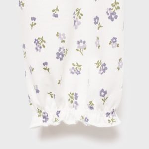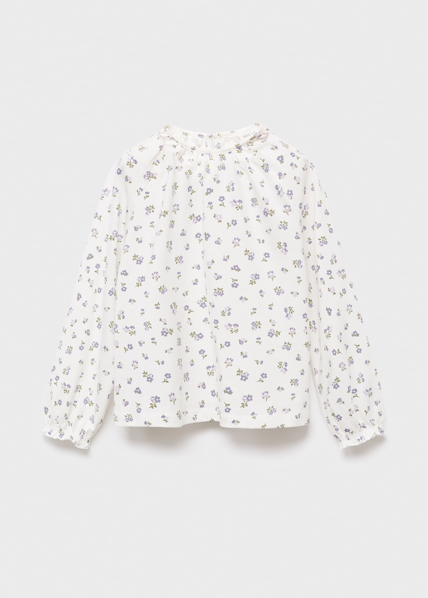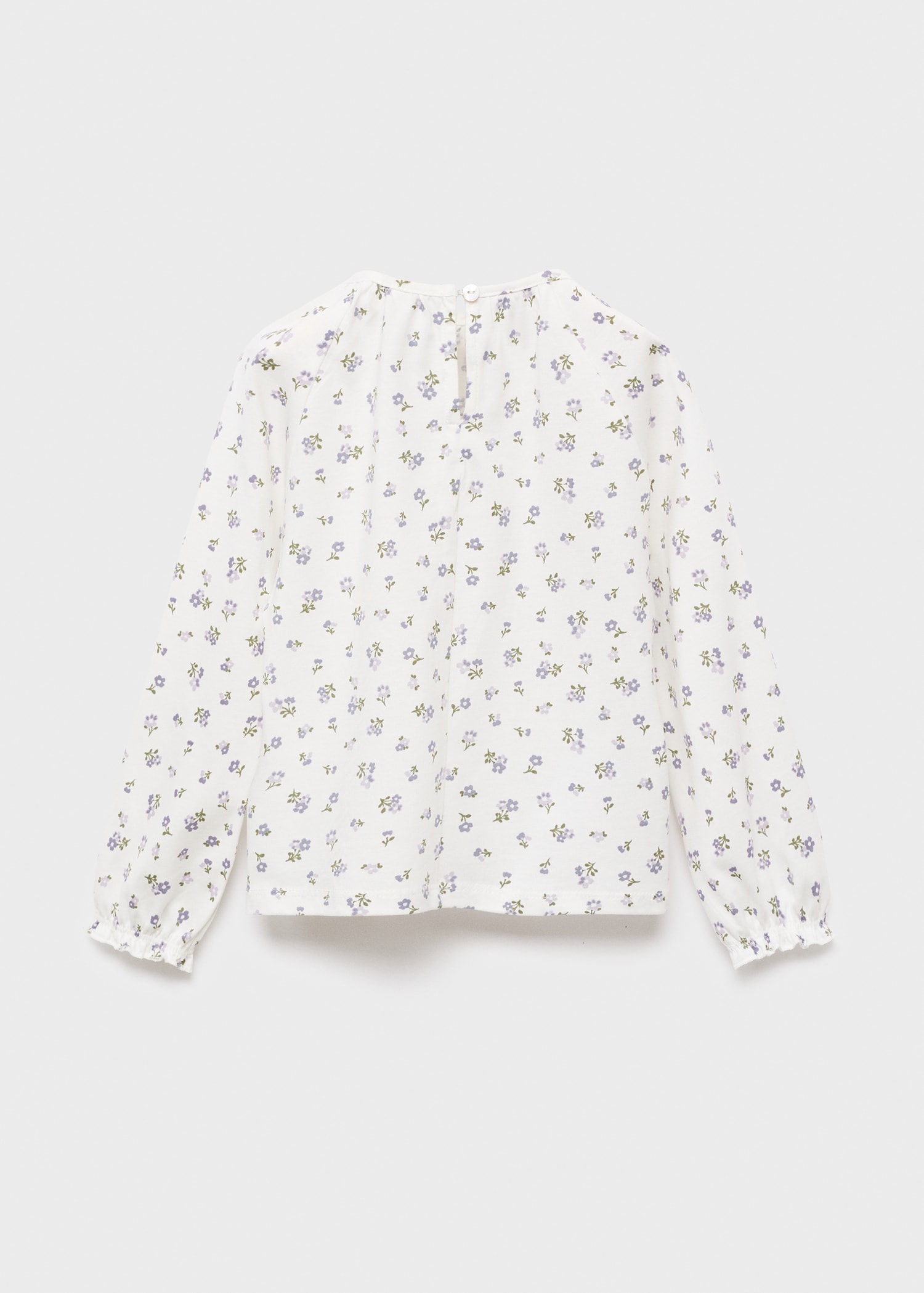 Crafted from 100% cotton fabric, this garment features a floral and straight design. The gathered round neckline and button closure at the back give it an elegant air. Long sleeves with gathered cuffs