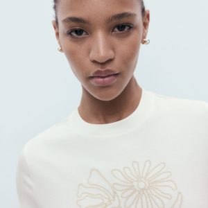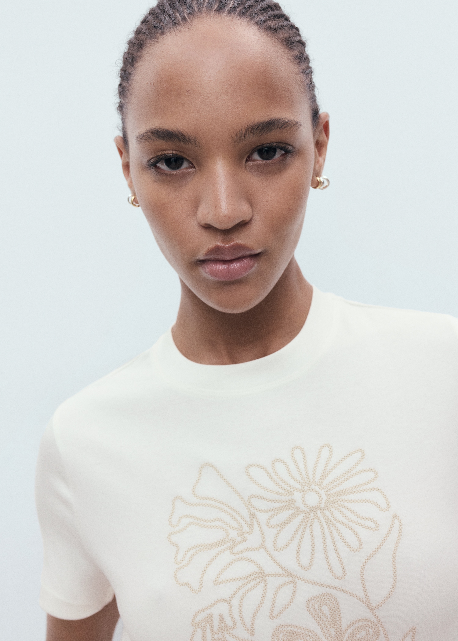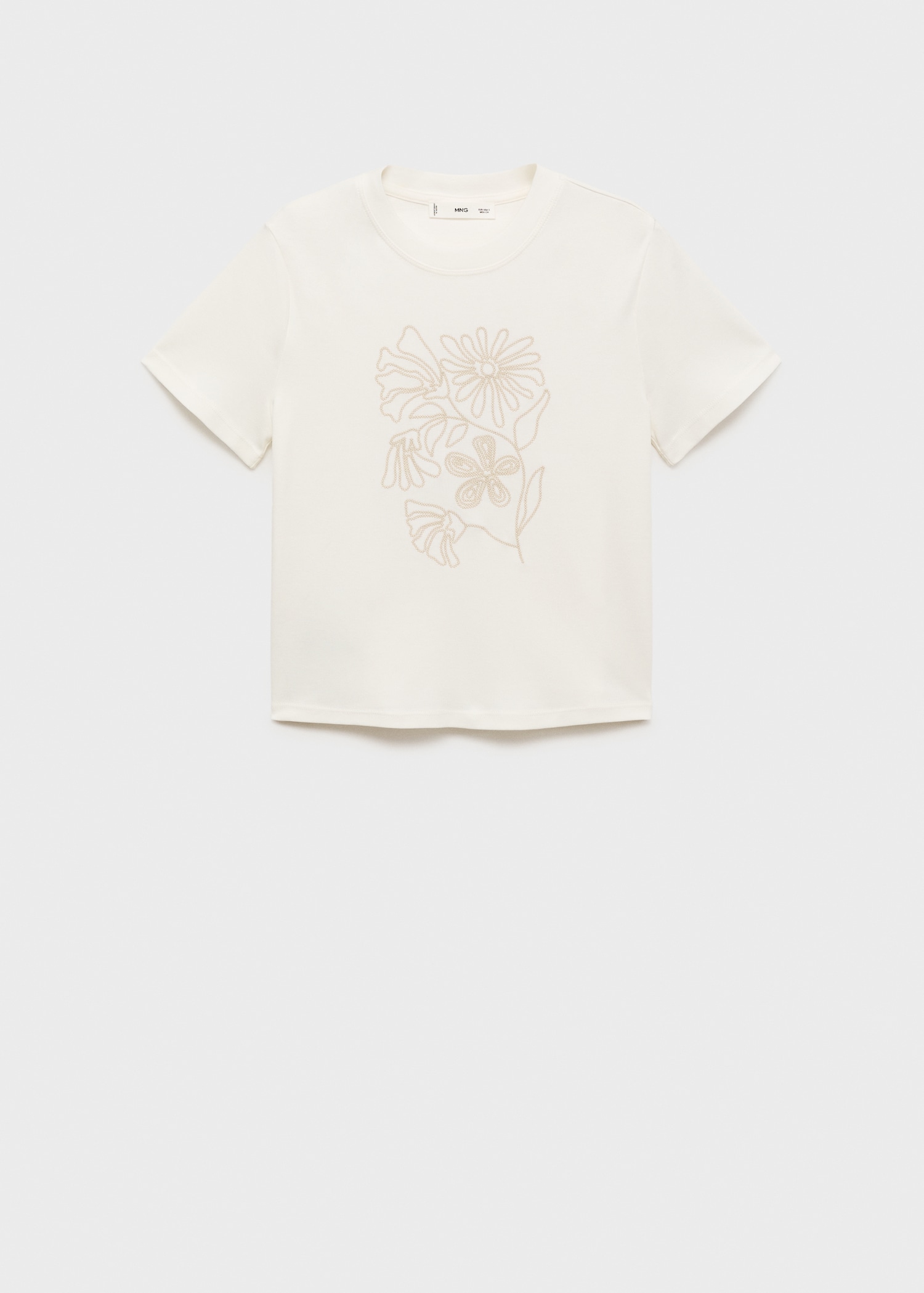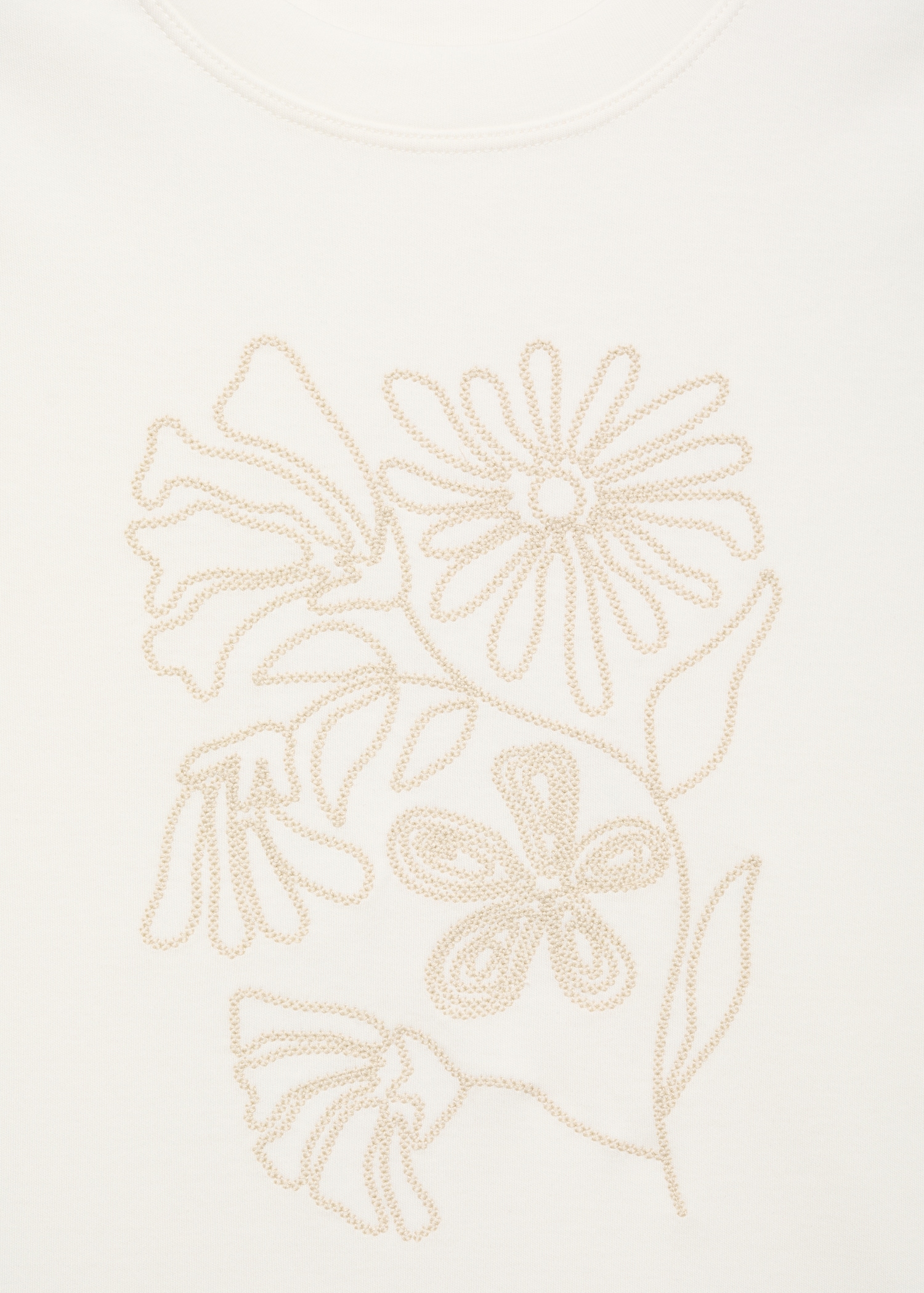 100% Cotton. Straight Design. Floral embroidery. Crew neck. Short sleeves. No closure