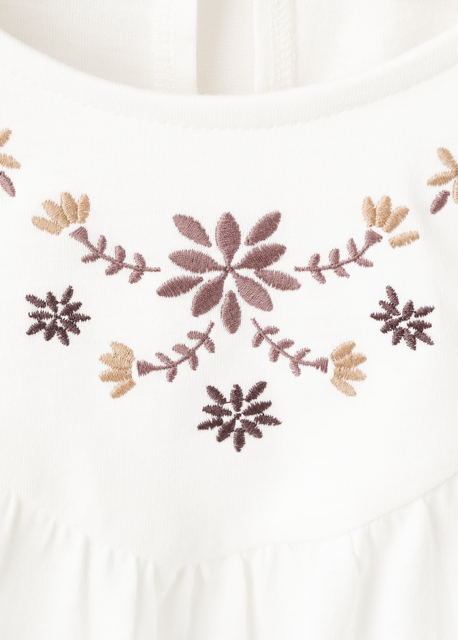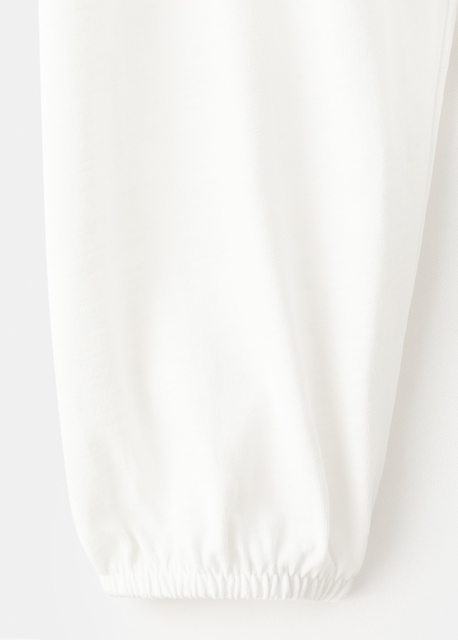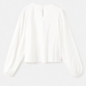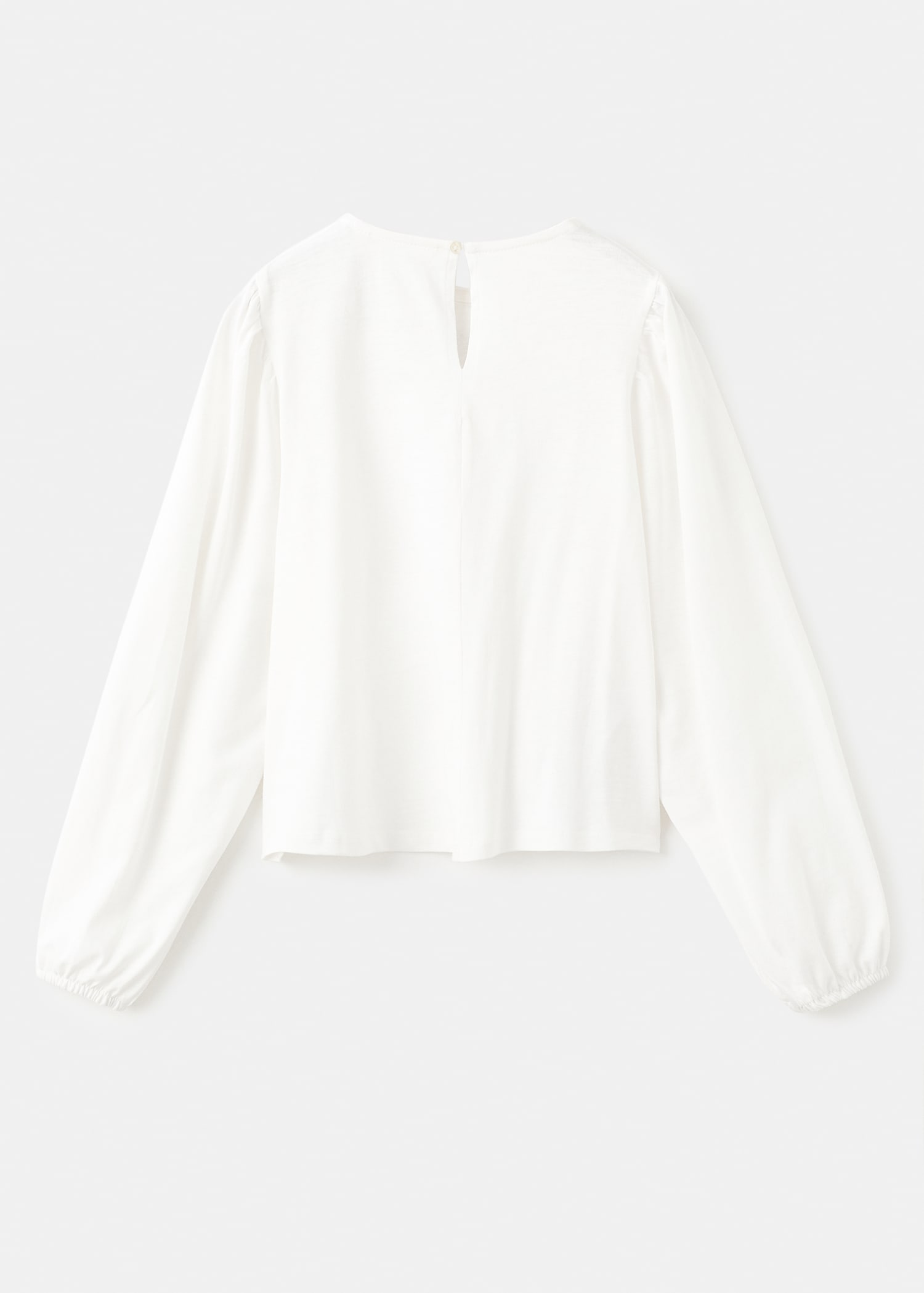 100% cotton fabric. Straight Design. Gathered detail on the chest. Crew neck. Long Sleeve. Gathered cuffs
