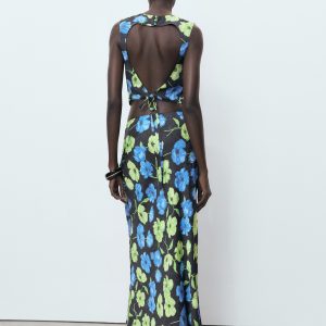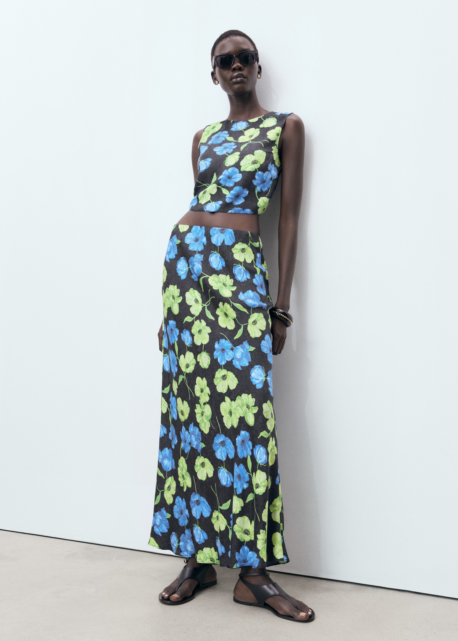 Floral-print long skirt