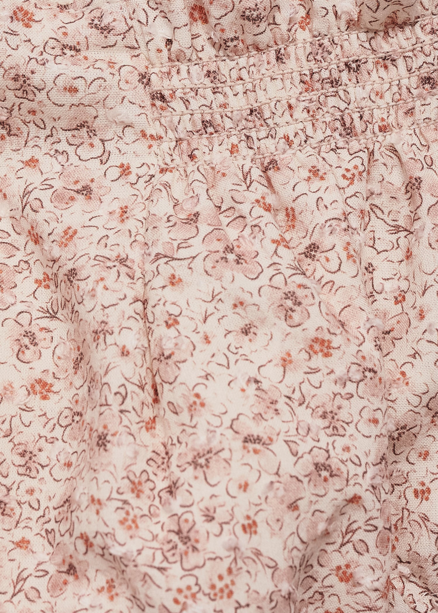 100% cotton fabric. Printed design. Floral print. Honeycomb waist detail. Hem with elastic band. With inner lining. Available set. Welcome Collection. Maternity Collection