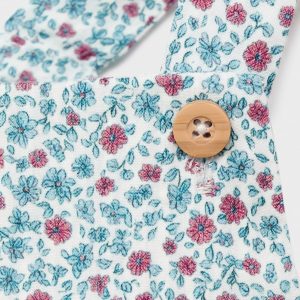 100% cotton fabric. Straight Design. Floral print design. Square neckline. Sleeveless. Wide straps. Straps with button closure. Snap button closure
