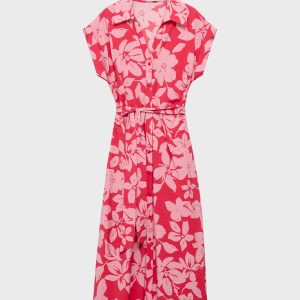Midi design. Straight Design. Floral print. Shirt collar. Short sleeves. Adjustable belt. Button closure at the front. Available Plus. This garment is part of our casual collection, designed to stylishly accompany you in your day-to-day life
