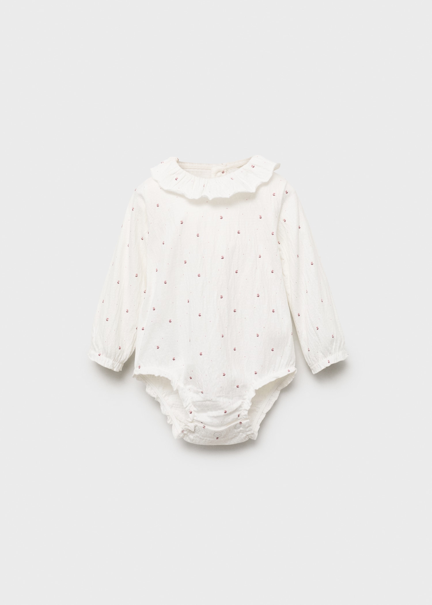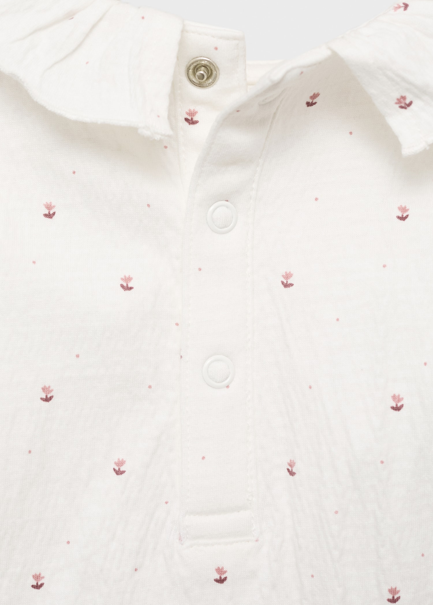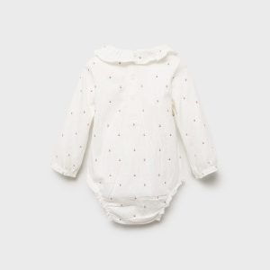 Crafted from a cotton-blend fabric, this bodysuit features a printed design with a Peter Pan collar and long sleeves. The press-stud closure makes it easy to wear and ensures comfort
