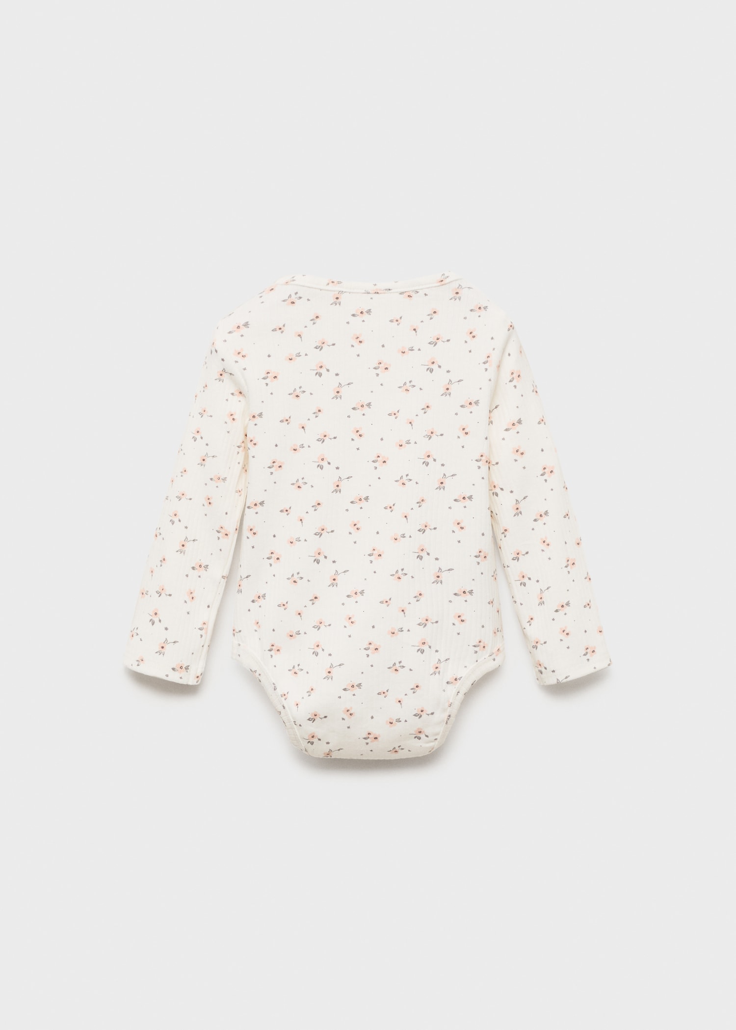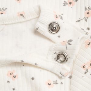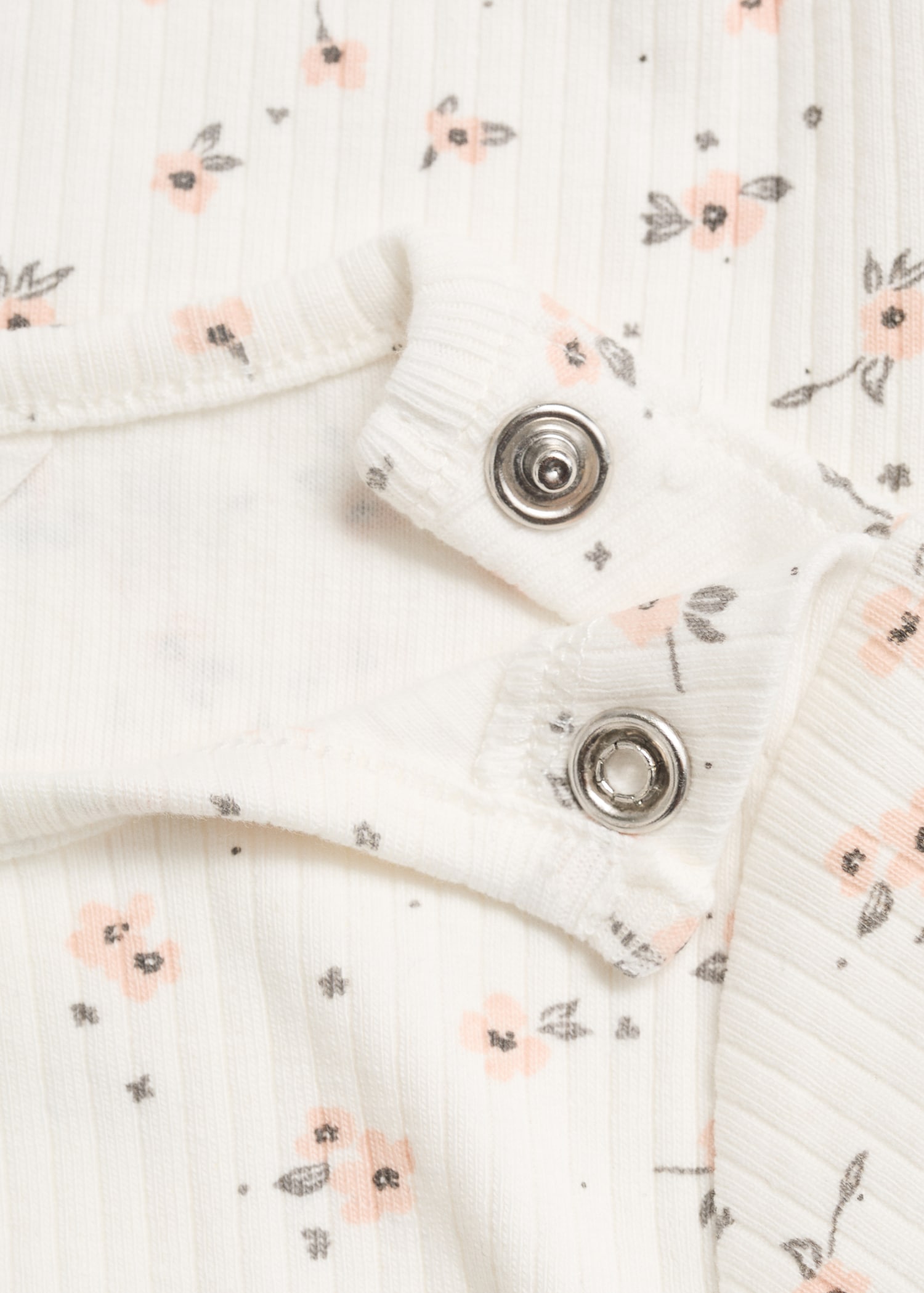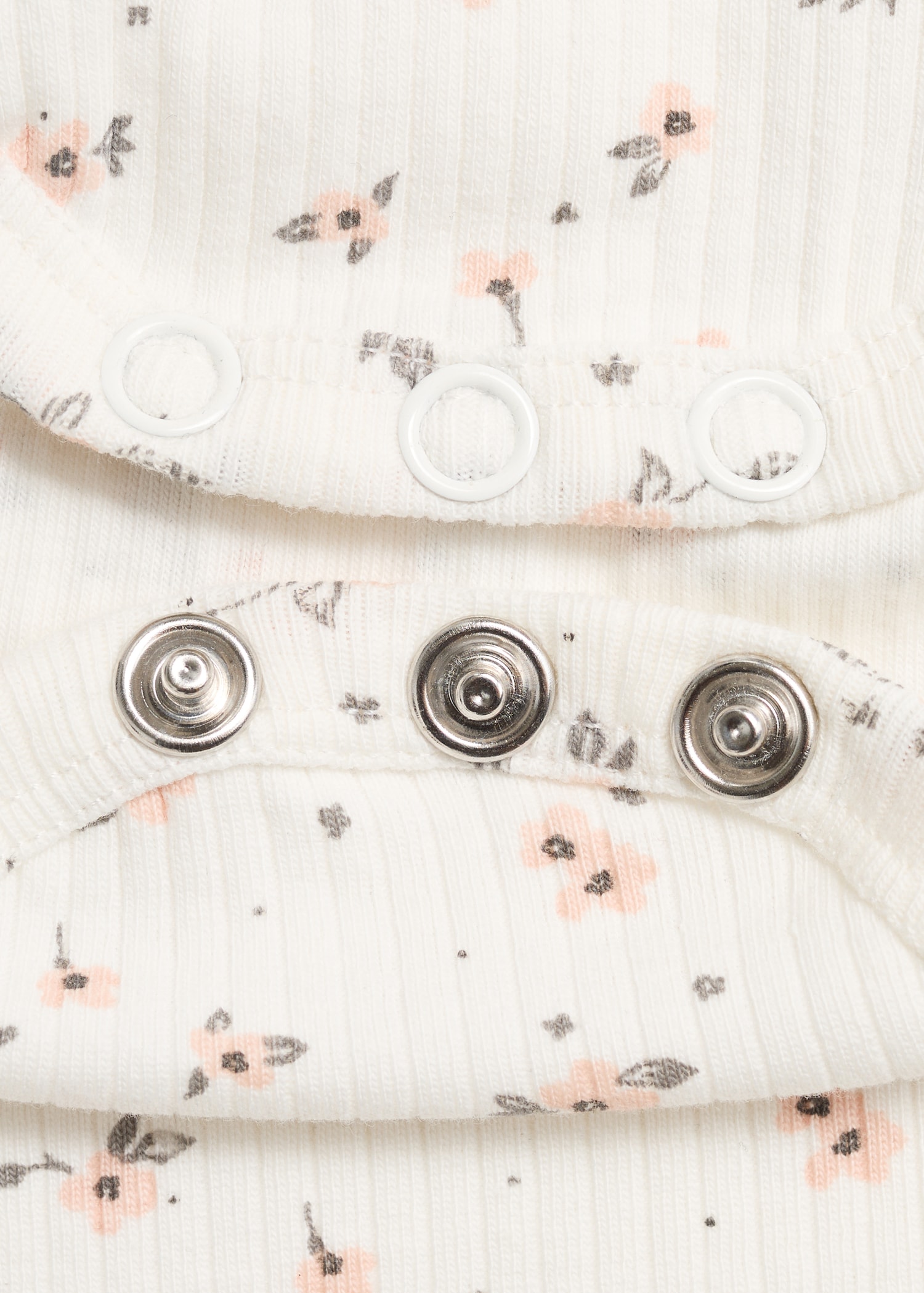Rib knit fabric. Cotton fabric. Stretch fabric. Floral print. Straight Design. Crew neck. Long Sleeve. Button closing on the neck. Button closure on the bottom