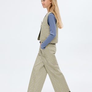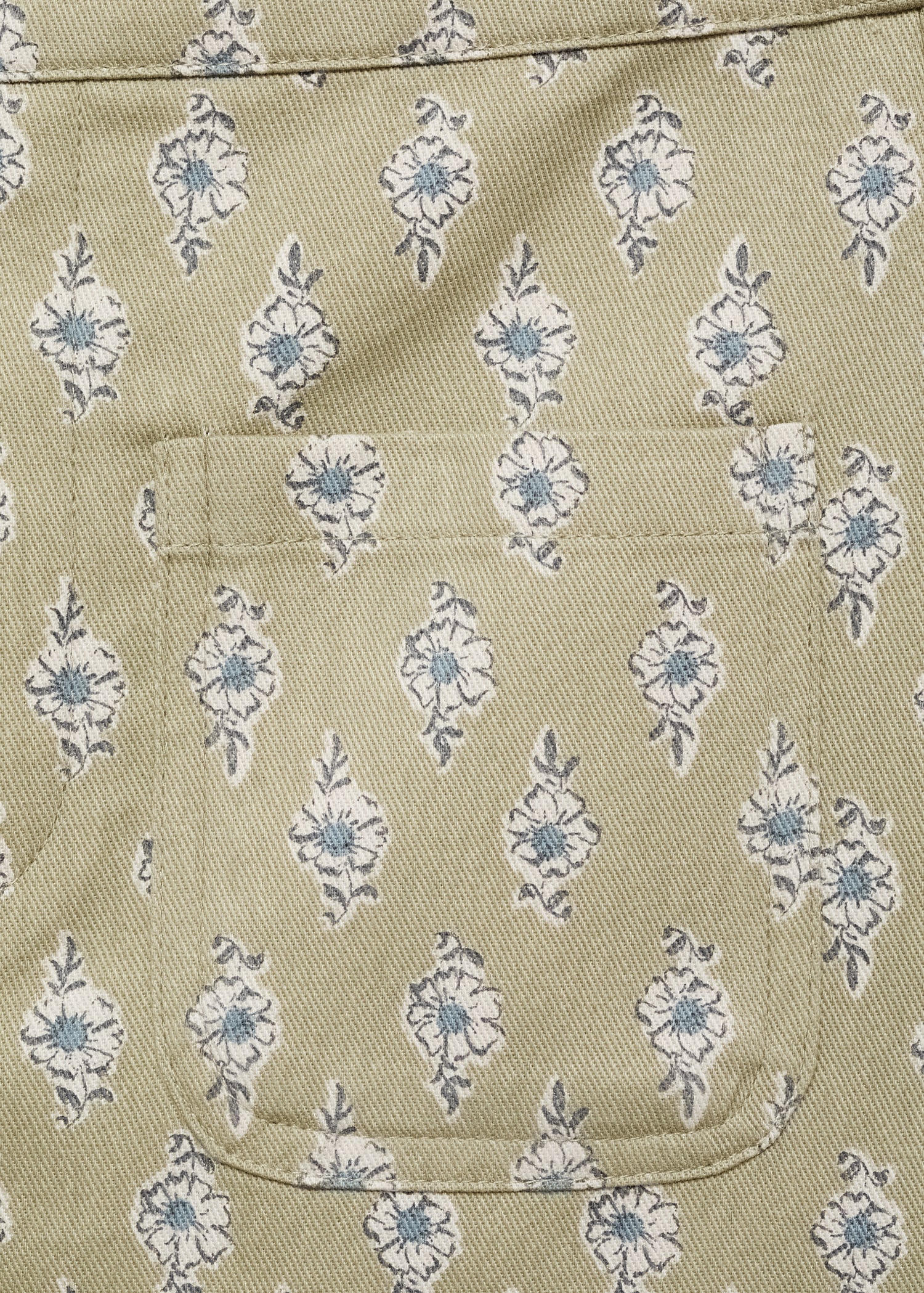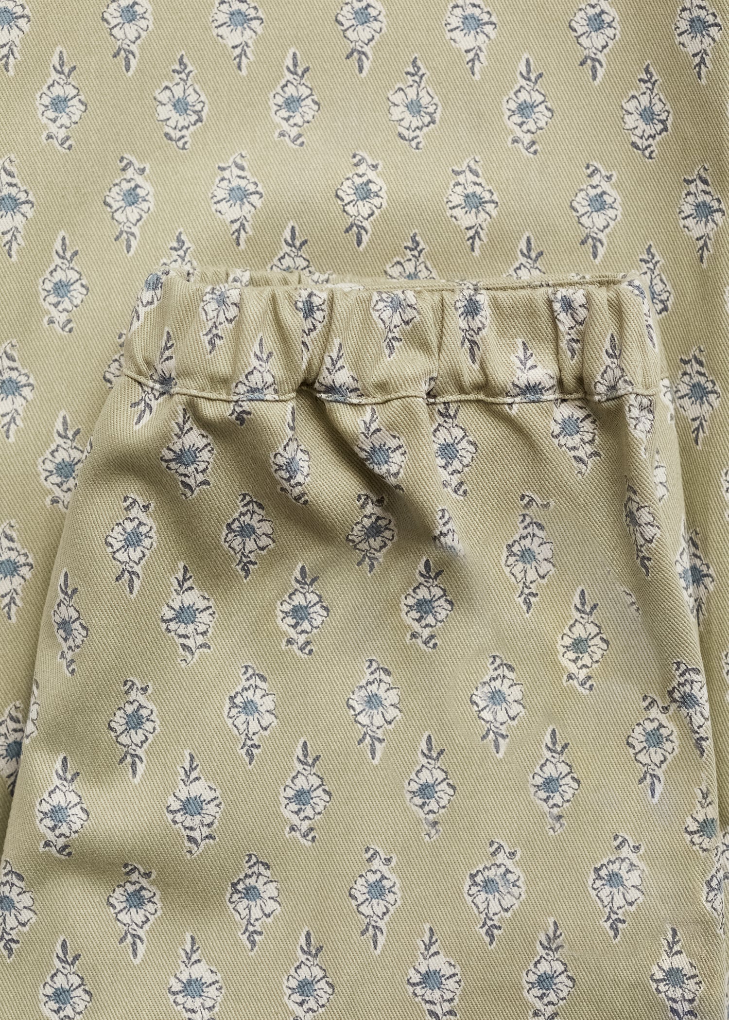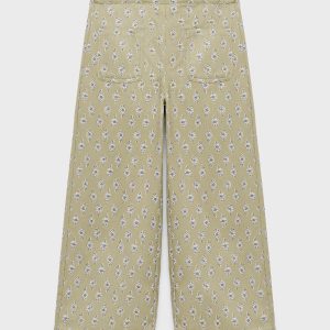 Crafted from 100% cotton denim fabric, this culotte design features a floral print. The adjustable elastic waistband offers comfort, while two patch pockets at the front enhance its functionality