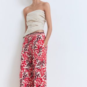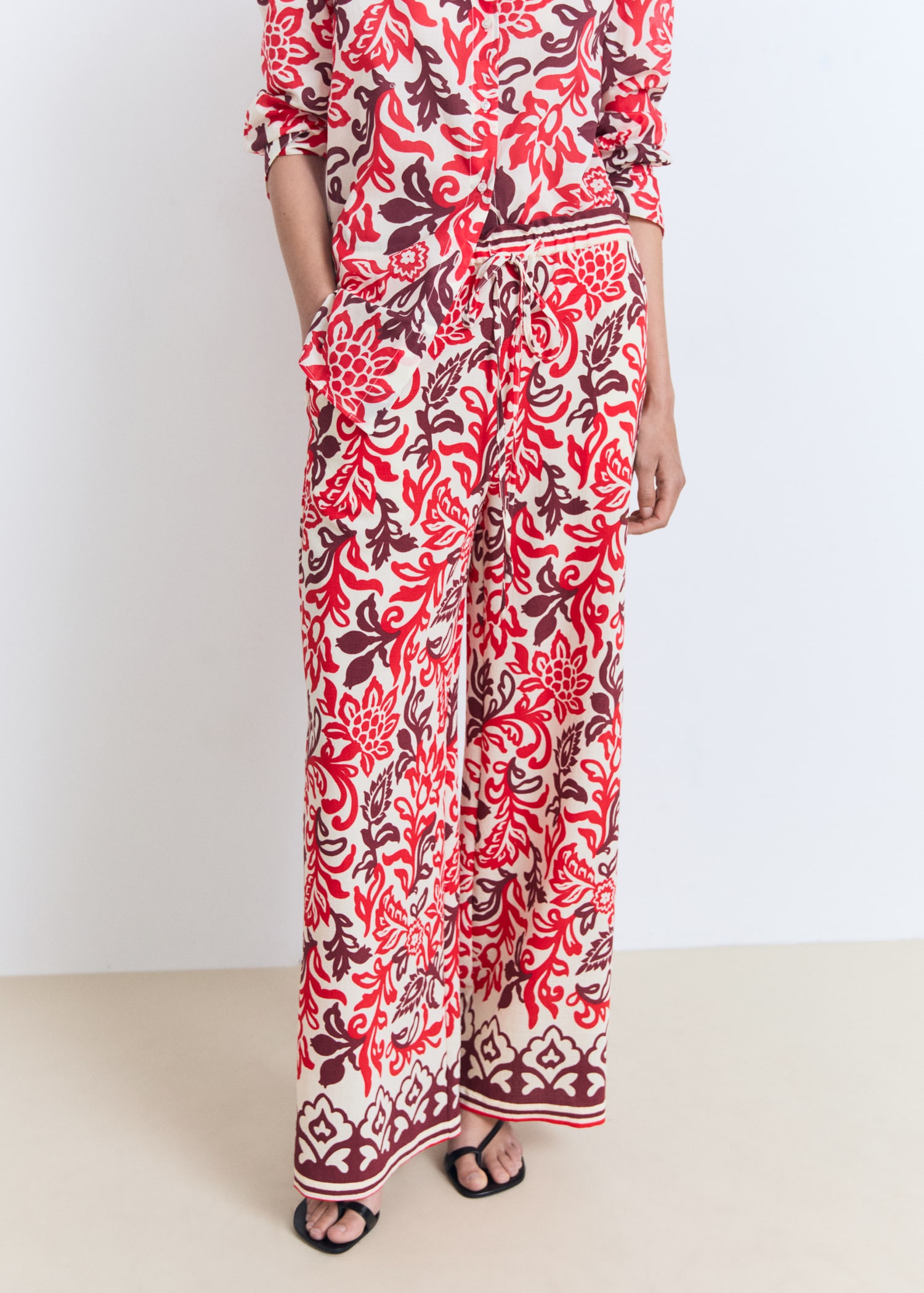 Fluid fabric. Long design. Straight Design. Printed design. Two side pockets. Elastic waistband. Adjustable drawstring. Total look