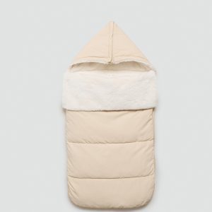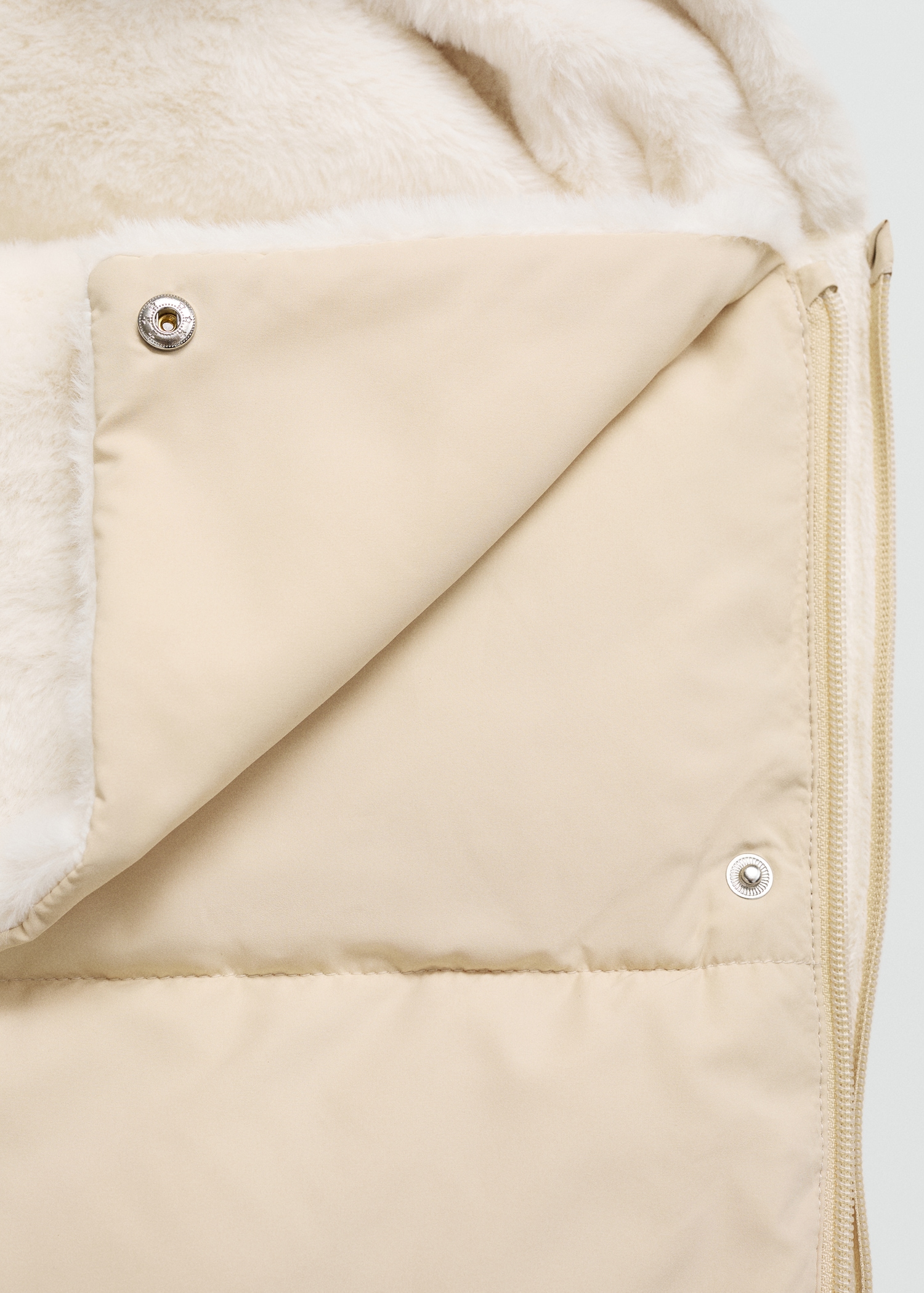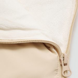Polyester fabric. Fur fabric. Sack design. Fur-effect lining. Zipper closure