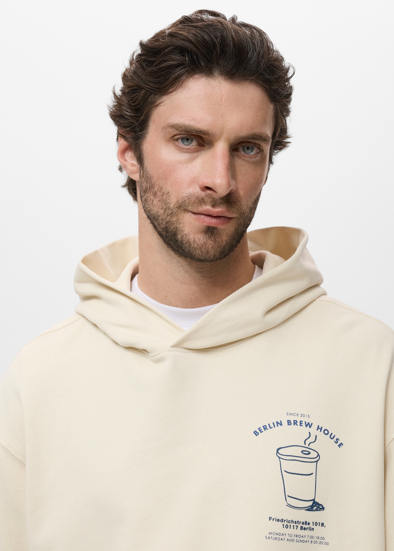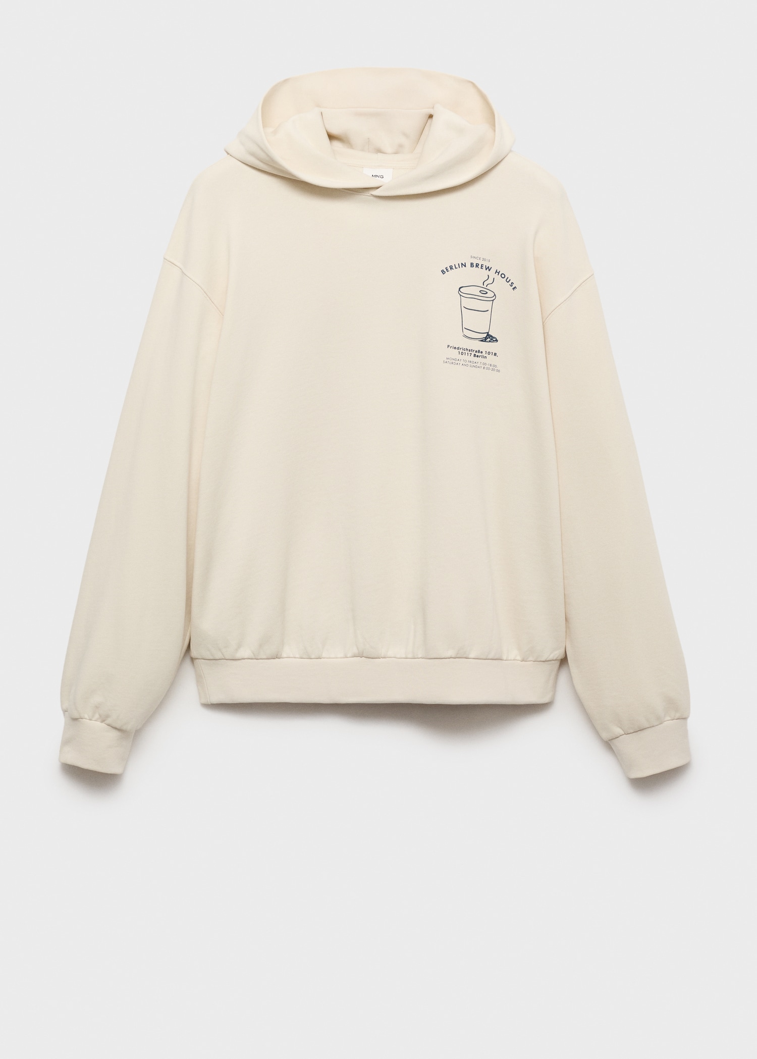 100% cotton fabric. Regular fit. With hood. Graphic print on the chest. Long sleeves with elastic cuffs. Ribbed cuffs and hem