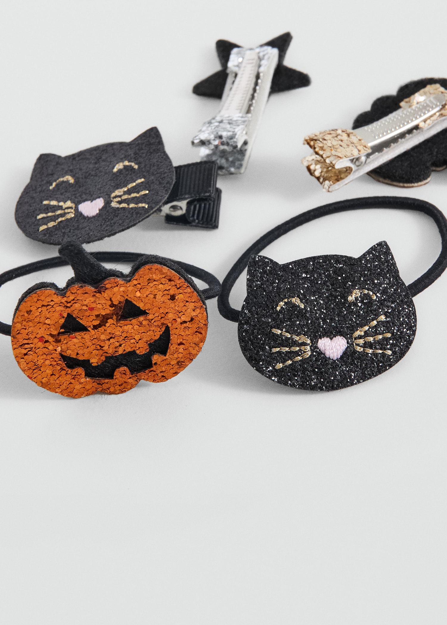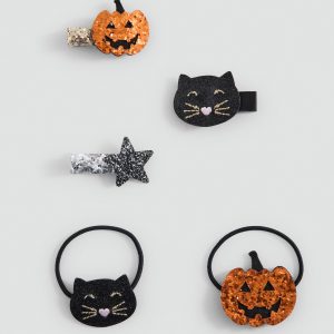 Pack of halloween scrunchies and hairclips. Glitter detail. Halloween Collection
