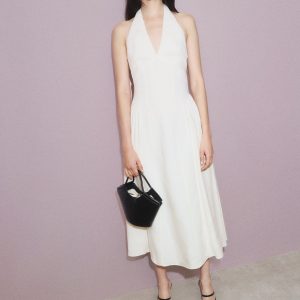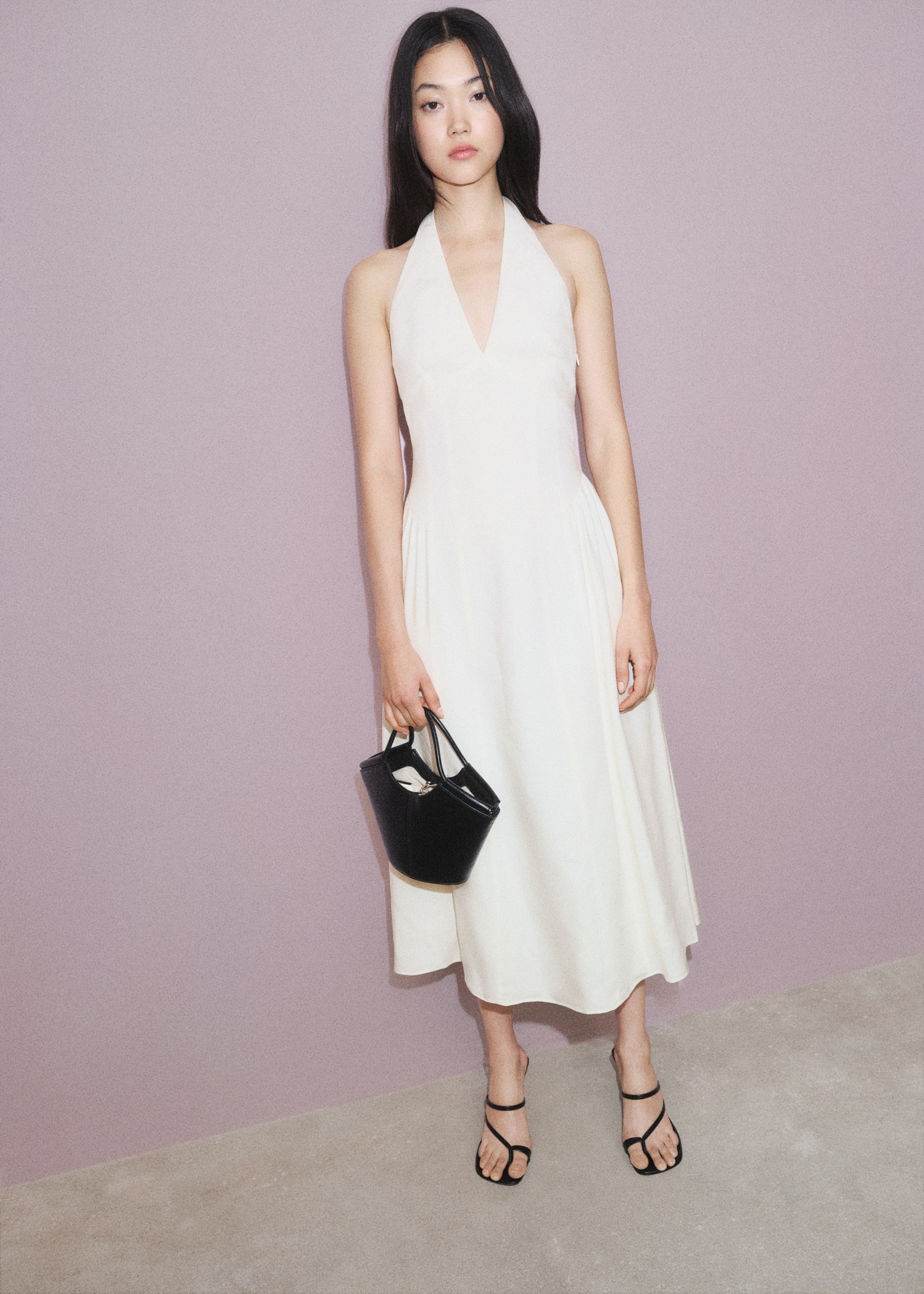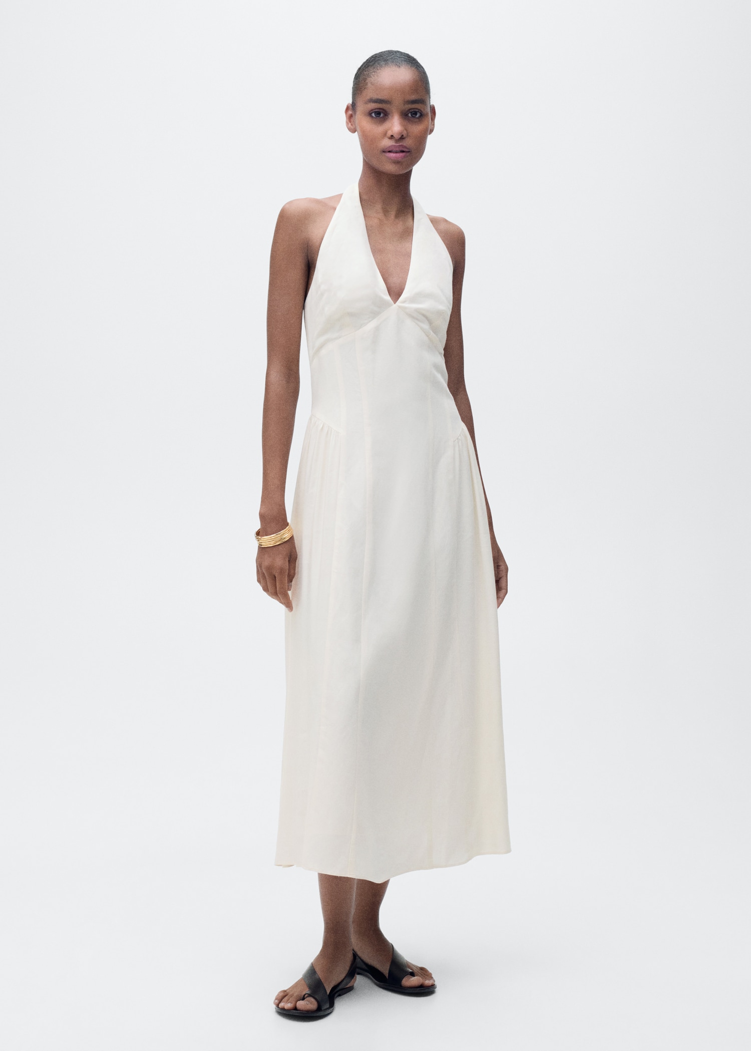 Halter-neck linen dress