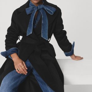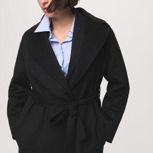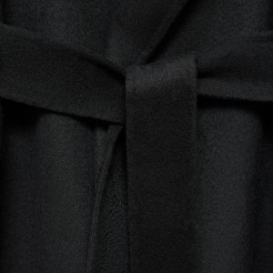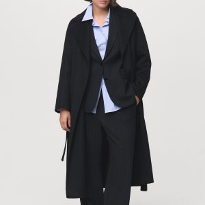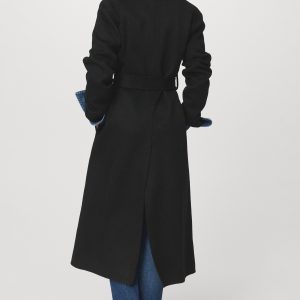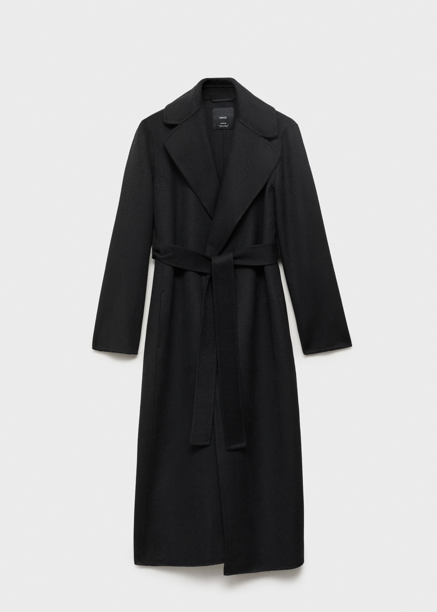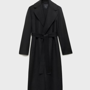 Crafted from a wool-blend fabric, this long, straight design features a V-neck with lapels and long sleeves. It has a robe-style belt fastening at the waist, two side pockets, and a back vent on the hem. Lined interior. Available in Plus Size