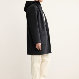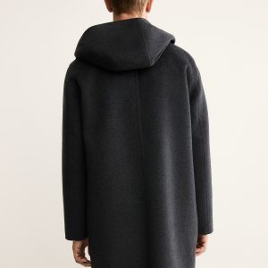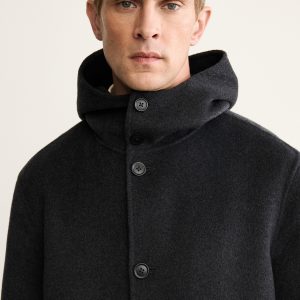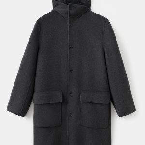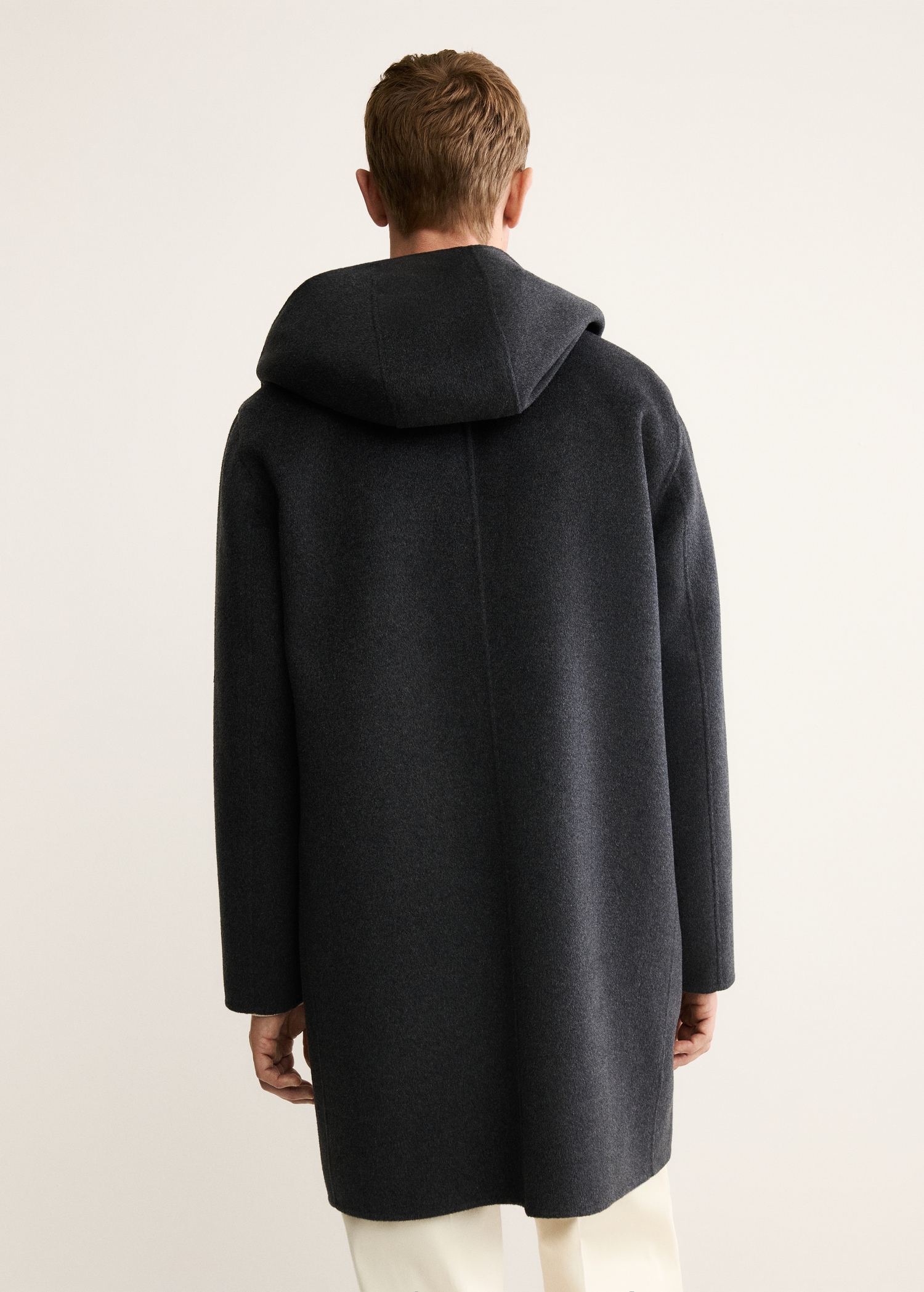 Handmade wool coat. Straight silhouette. Turtleneck. With hood. Two pockets with flaps on the front. Long Sleeve. Front button closure. Straight hem. SELECTION: A collection of classic garments featuring minimalist lines and a meticulously crafted design. Made from high-quality fabrics to create a timeless and stylish wardrobe
