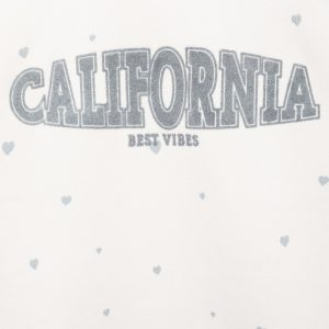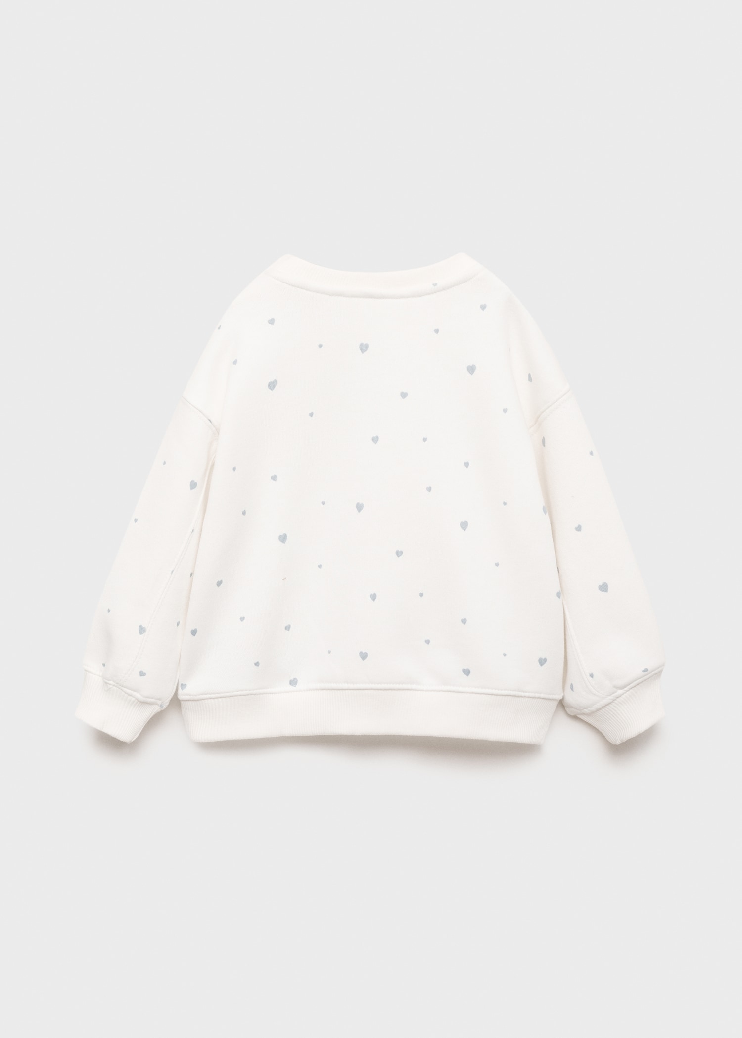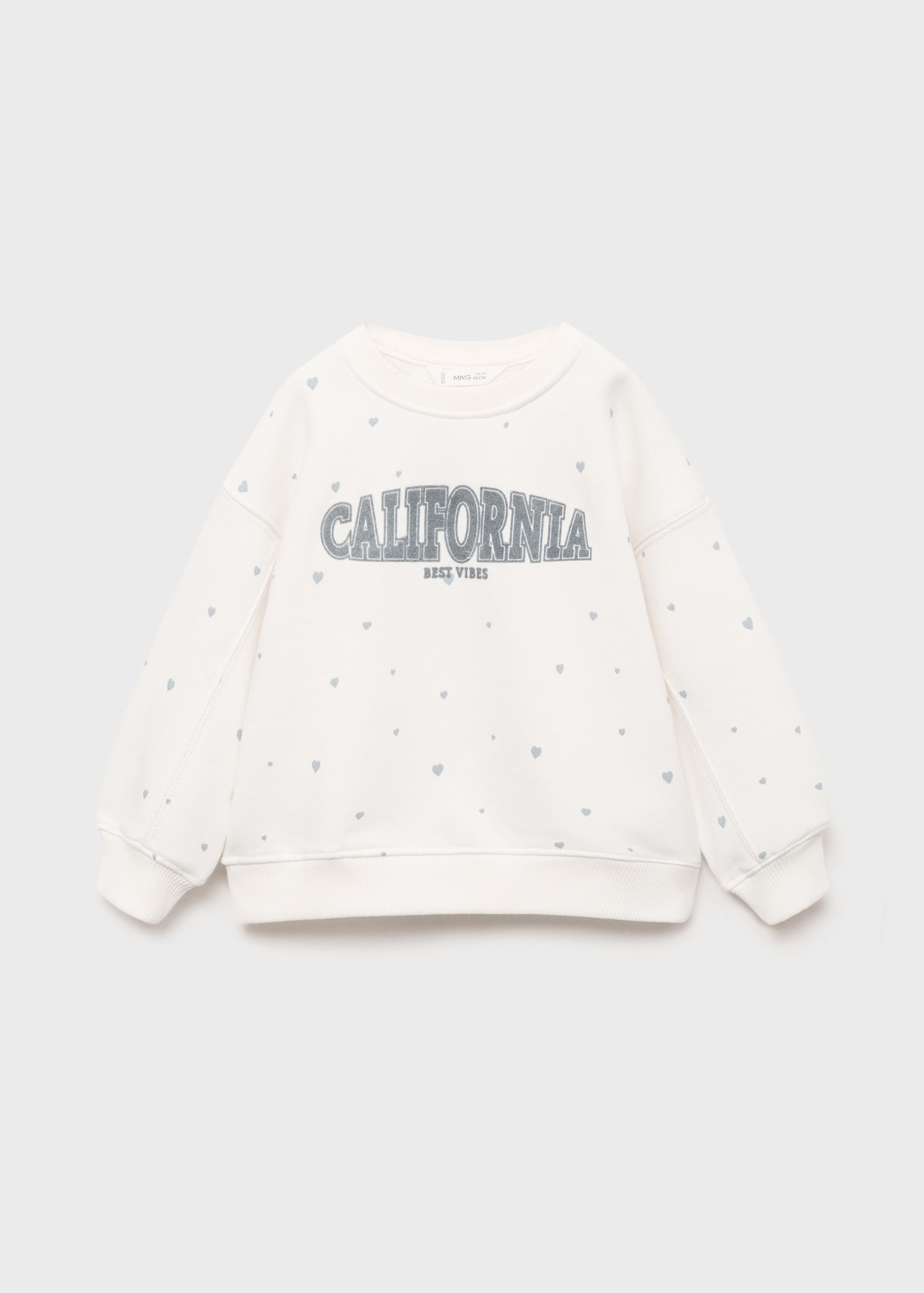 Cotton fabric. Straight Design. Printed design. Crew neck. Long Sleeve. Ribbed neck, cuffs, and hem. Heart print. Letter print
