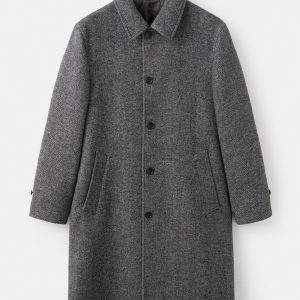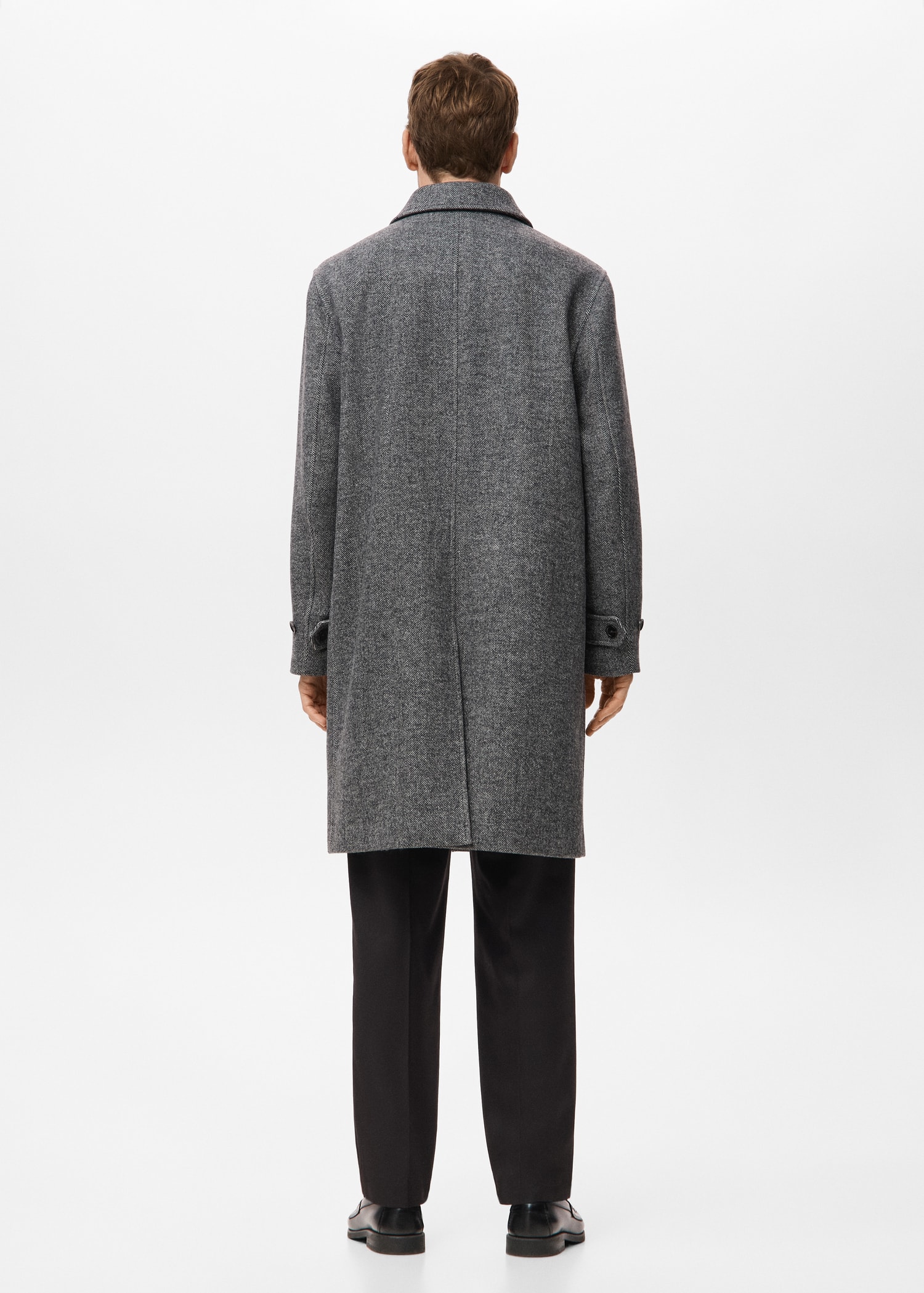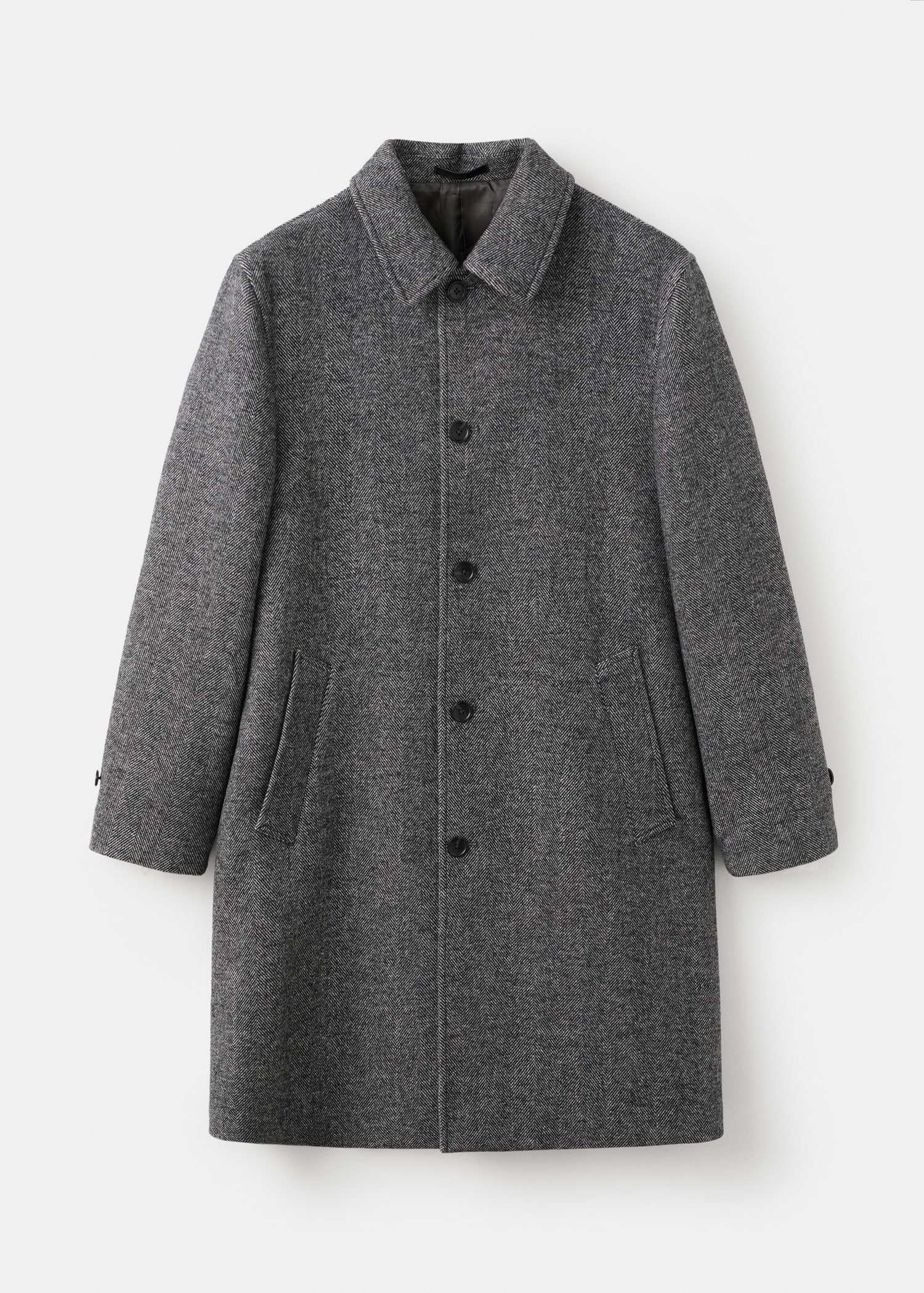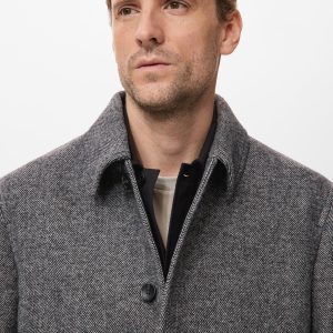 Party collection. Wool-blend fabric. Straight silhouette. Herringbone structure. Notched lapel collar. Two side pockets. With inner lining. Long sleeves with buttoned cuffs. Back Slit at the Hem. Front button closure