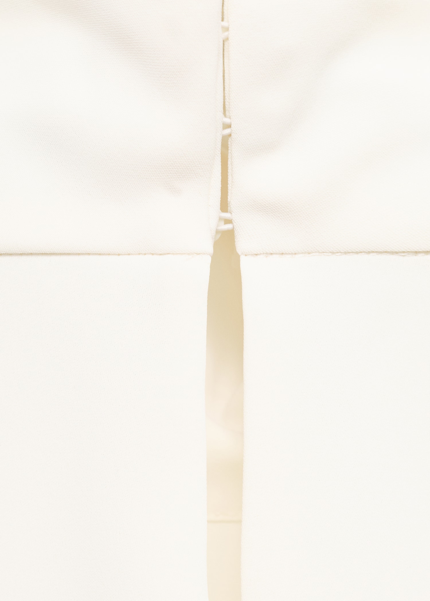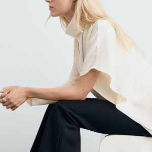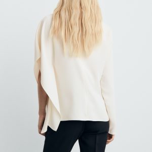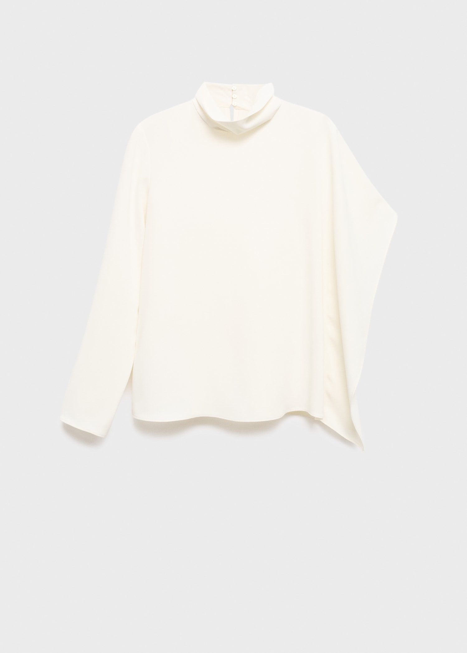 Straight Design. Turtleneck. Asymmetrical sleeves. Long sleeves with slit. Back zipper closure
