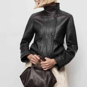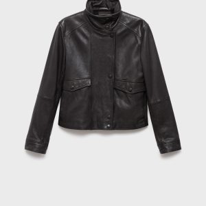 High-neck leather jacket