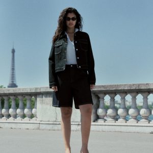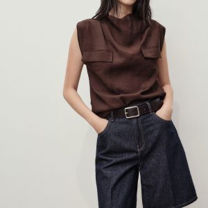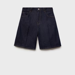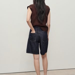 High-waist rinse-wash denim shorts