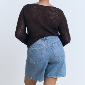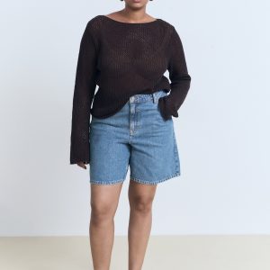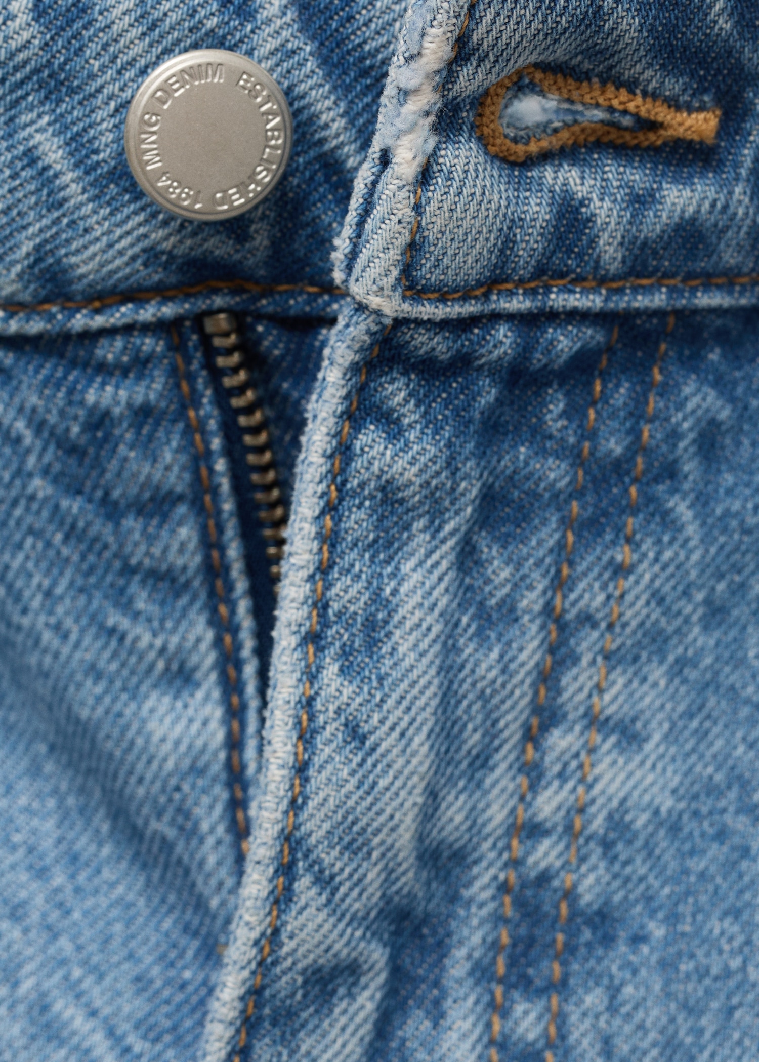 Cotton denim fabric. Straight Design. High-rise. Belt loops. Five pockets. Button and zipper closure. Available Plus