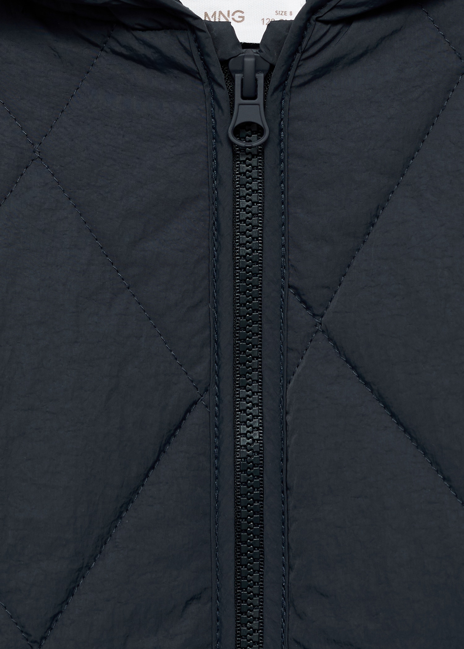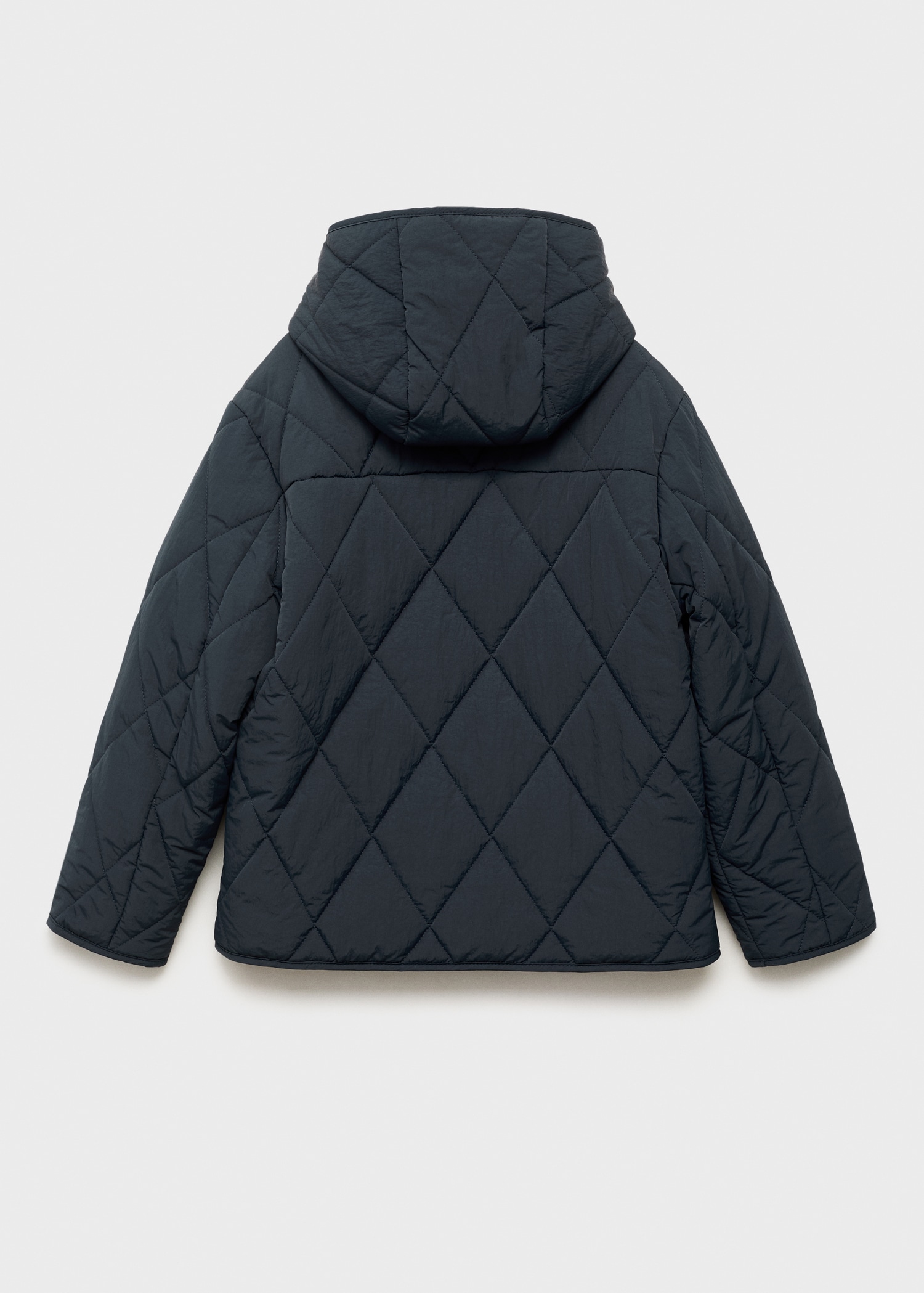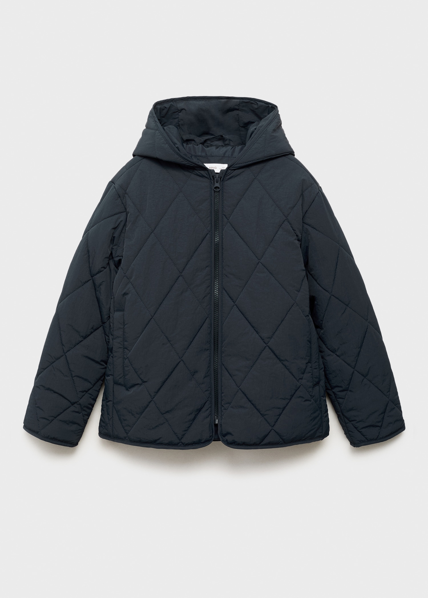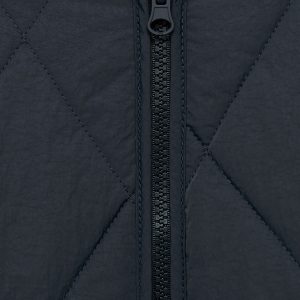 Quilted fabric. Straight Design. With hood. Long Sleeve. Two side pockets. Zipper closure