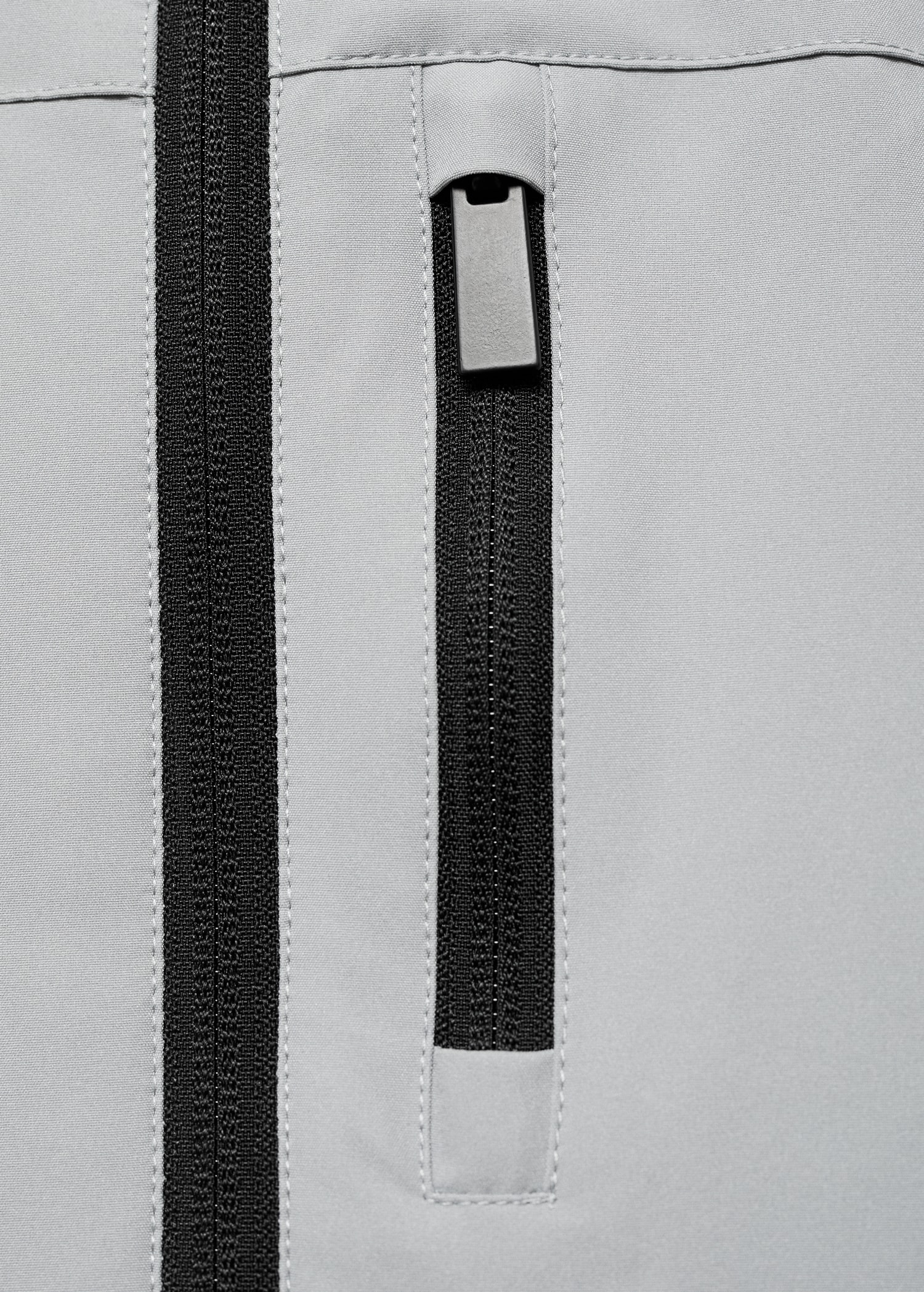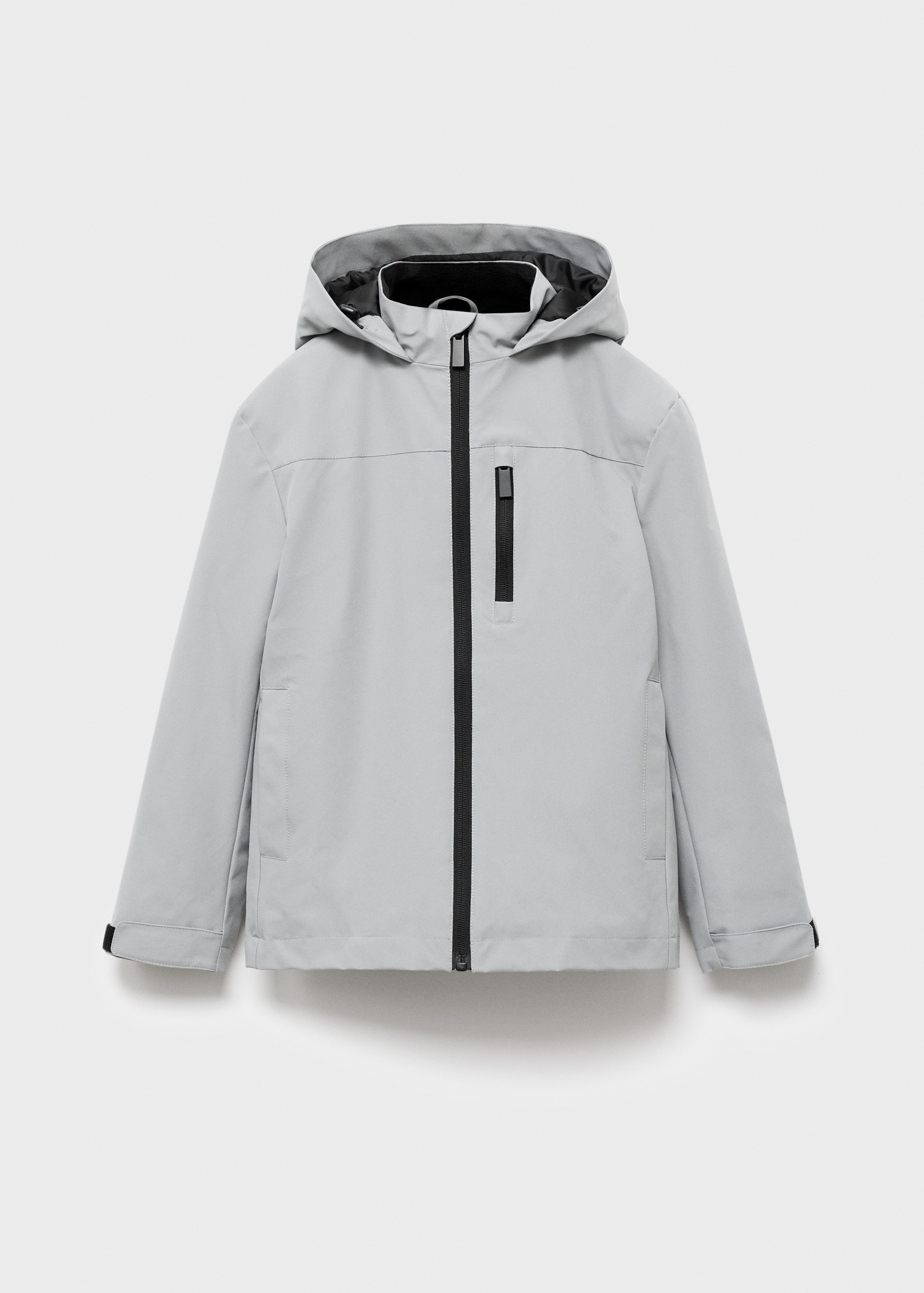 Polyester fabric. Waterproof fabric. Straight Design. With hood. Long sleeve with adjustable cuffs. Chest pocket. Two side pockets. Zipper closure
