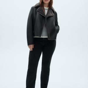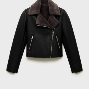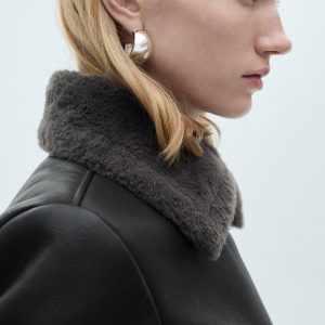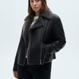 Heavy structure. Front closure. Slim fit. Long Sleeve. Fur-effect. Double-sided design. Shirt collar. Short design. Leather effect. Faux fur collar. Zip fastening on the front section. Side pockets. Available Plus. Fur-effect lining. Fur-effect lining. Faux fur detail. Inner lining