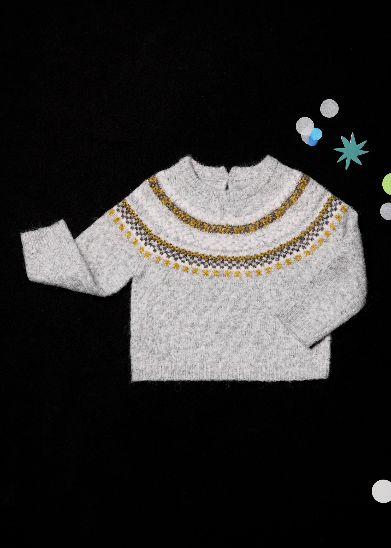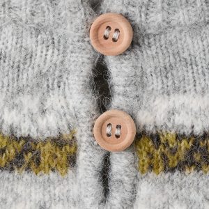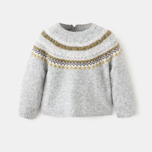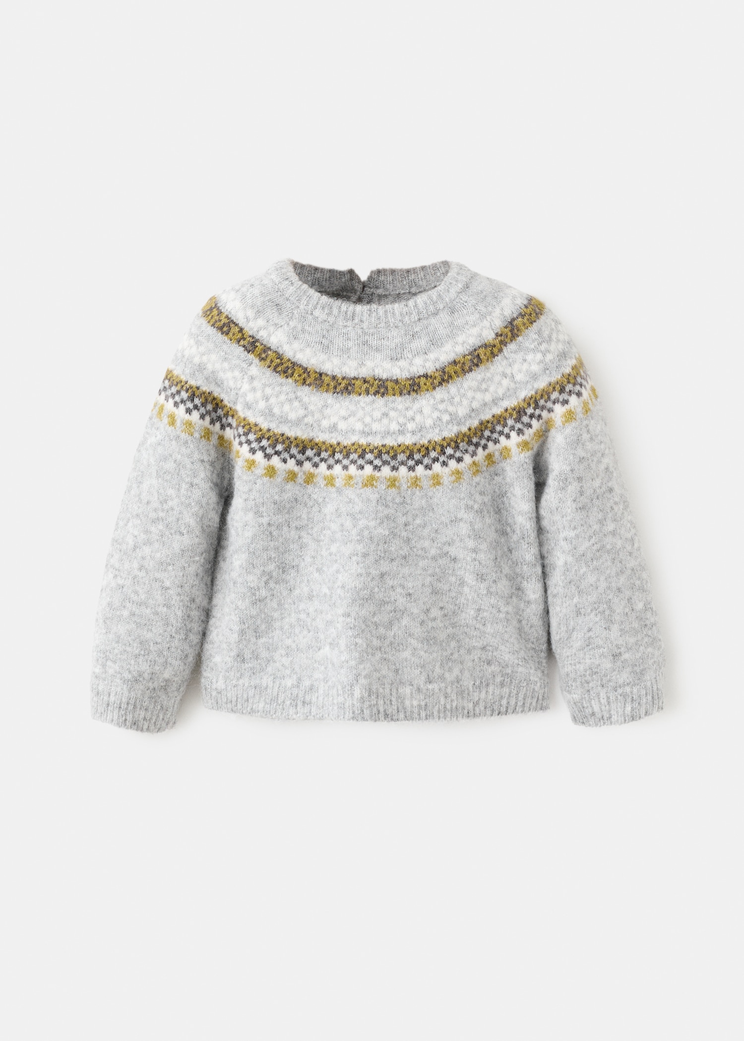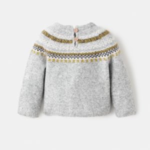 Knitted fabric. Straight Design. Jacquard design. Crew neck. Long Sleeve. Button closure at the back