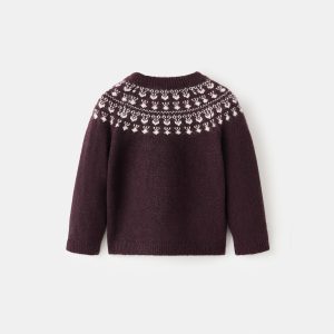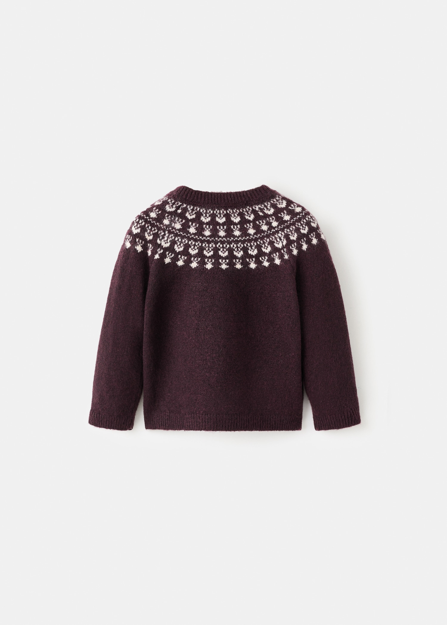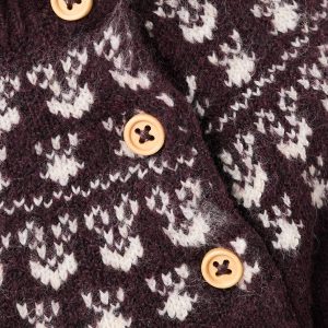 Knitted fabric. Jacquard design. Crew neck. Long Sleeve. Front button closure