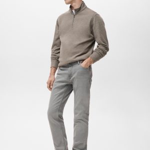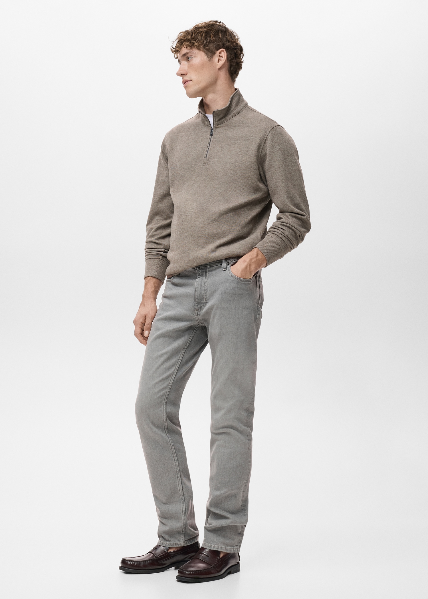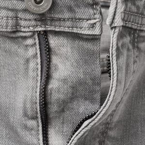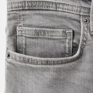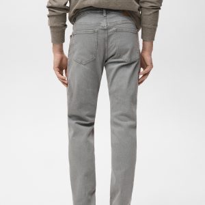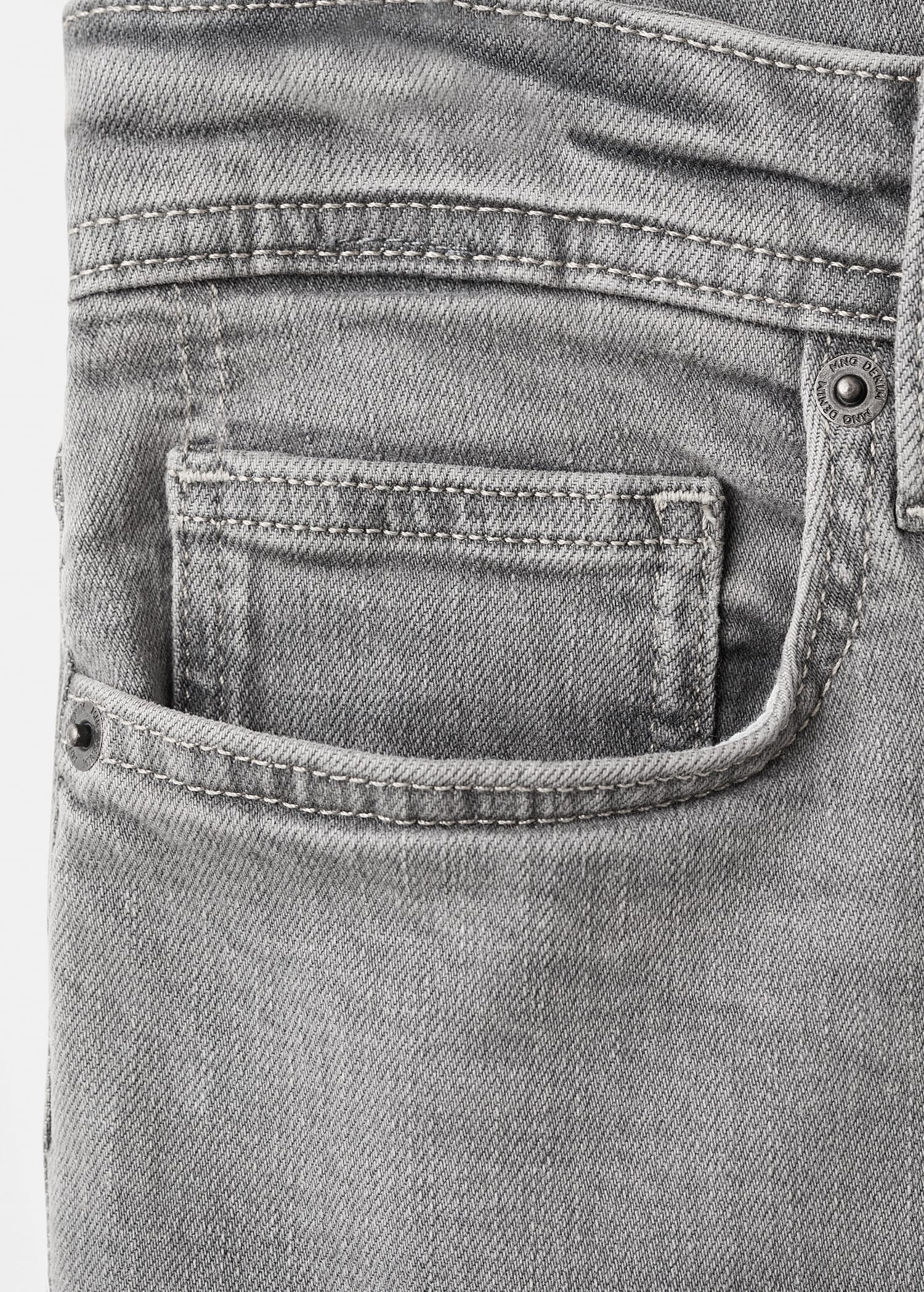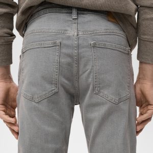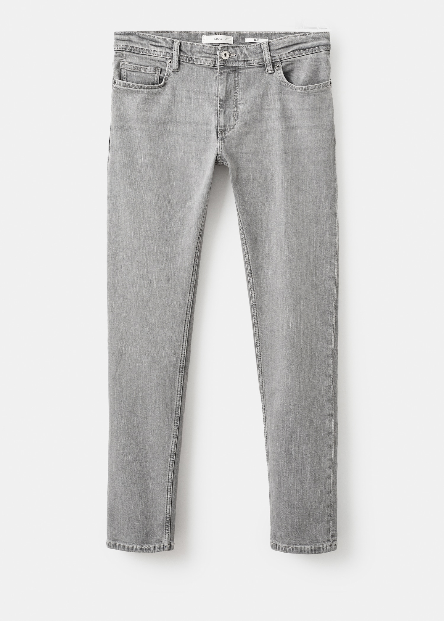 Slim fit. Cotton fabric. Denim jeans style. Button and zipper closure. Side pockets. Coin pocket. Two patch pockets at the back