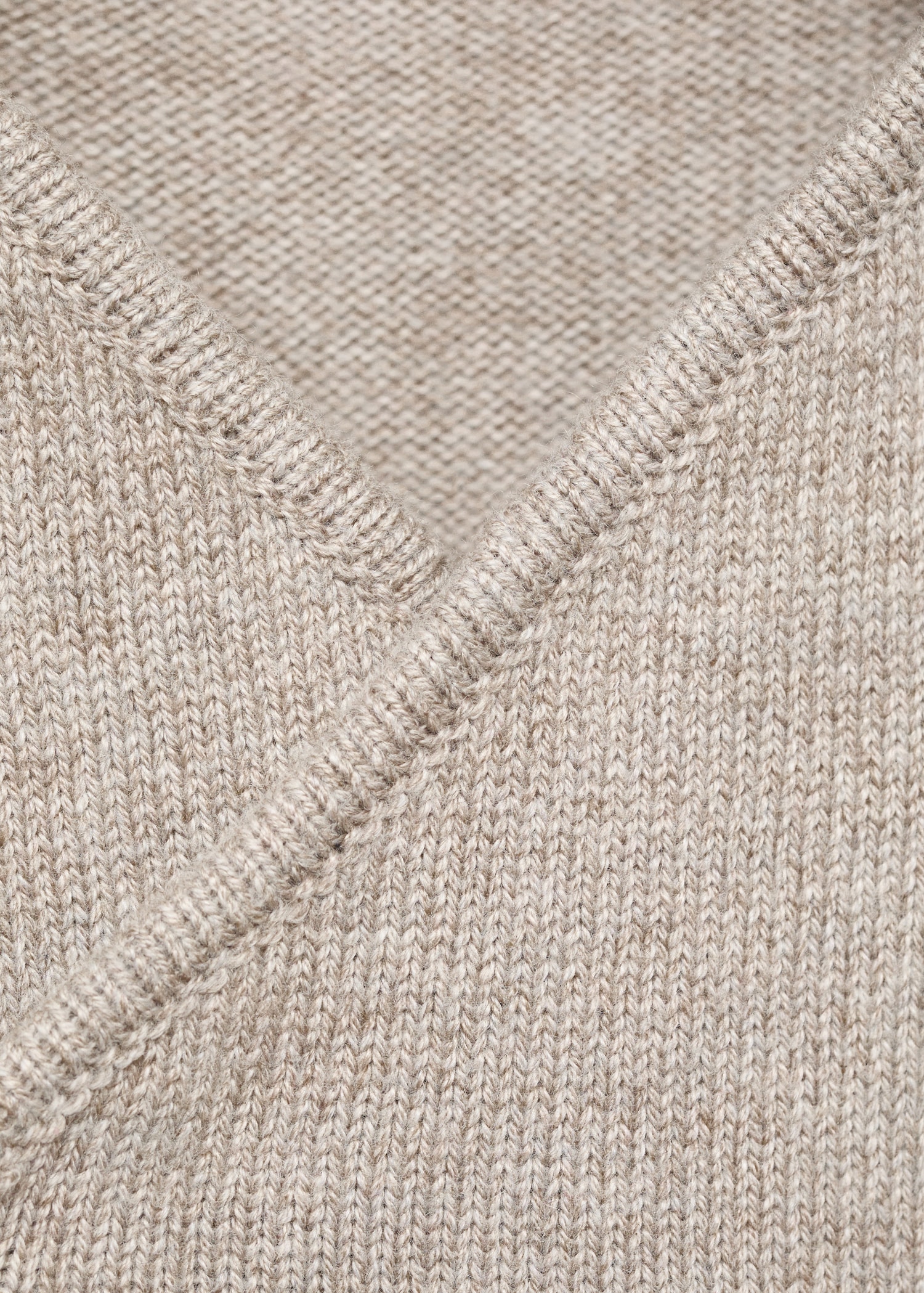 Cotton blend fabric. Long design. Fitted design. Wrap design. V-neck. Long Sleeve. Side tie closure. Welcome Collection. Maternity Collection