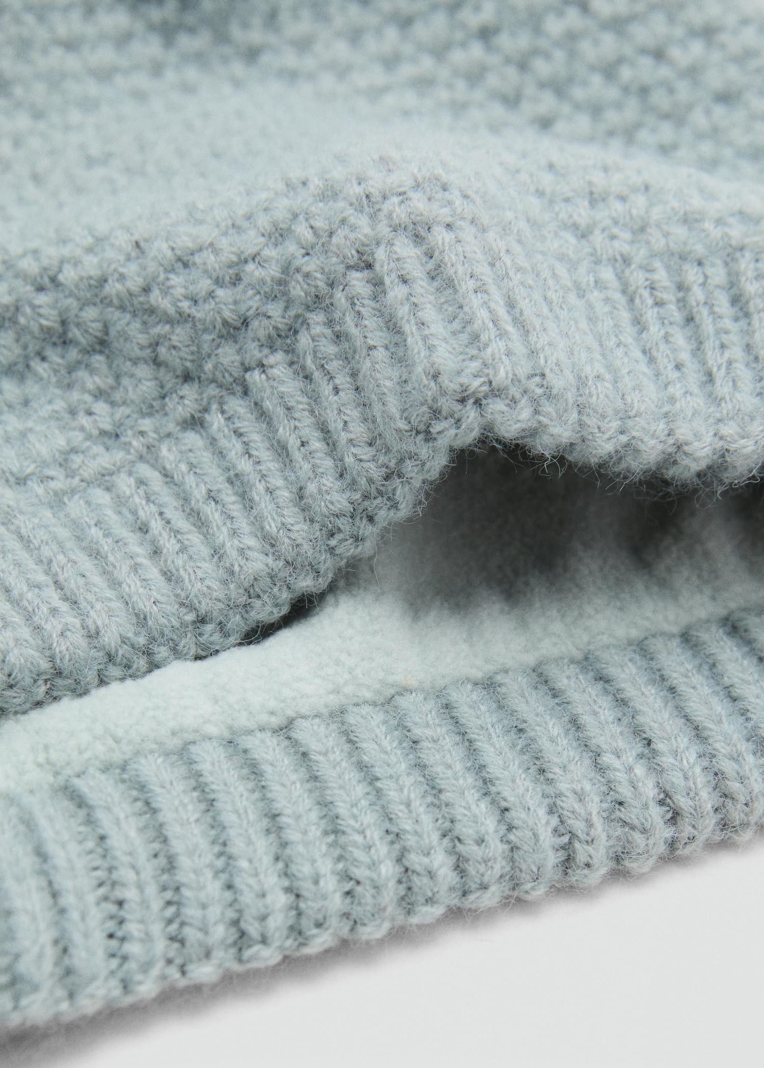 Knitted fabric. Inner polar fleece lining. Straight Design. Available set. This scarf has a matching hat available. 8.66×5.12 in