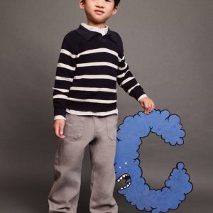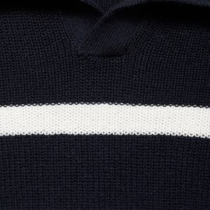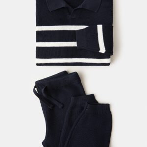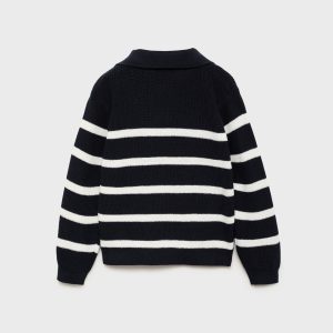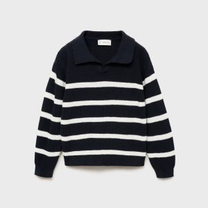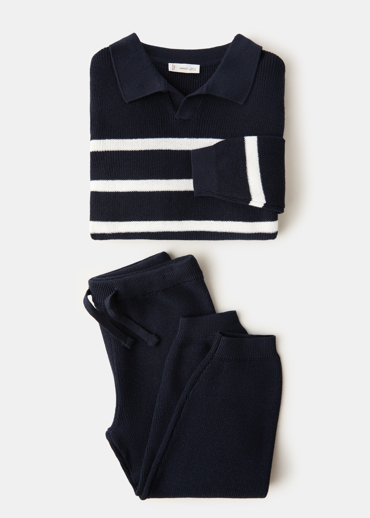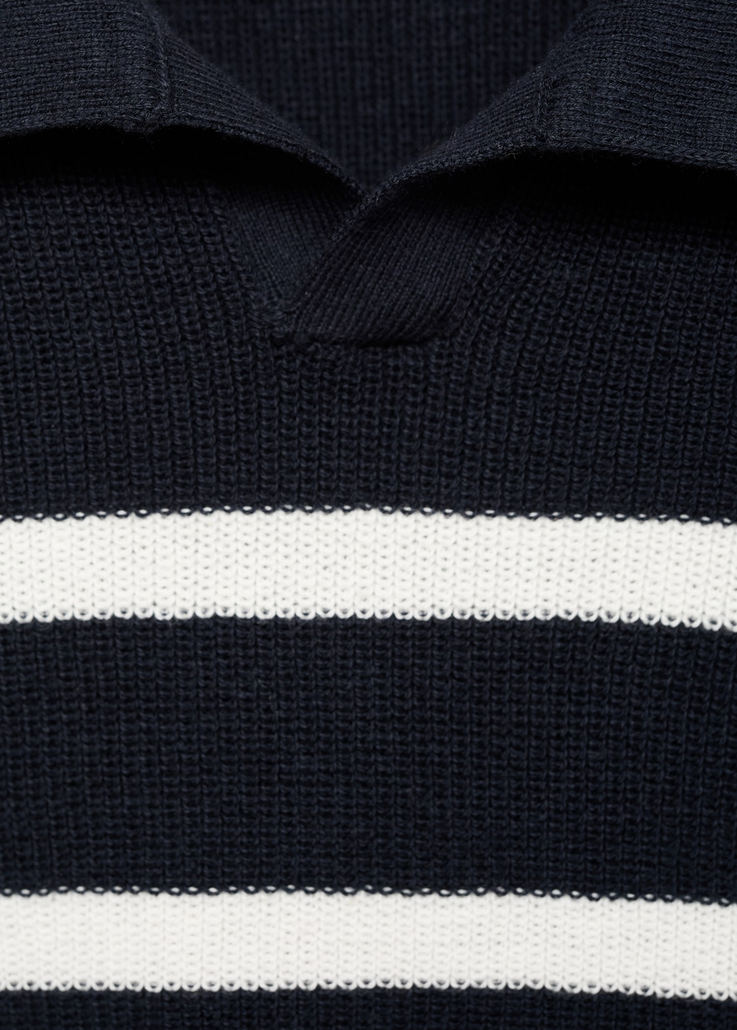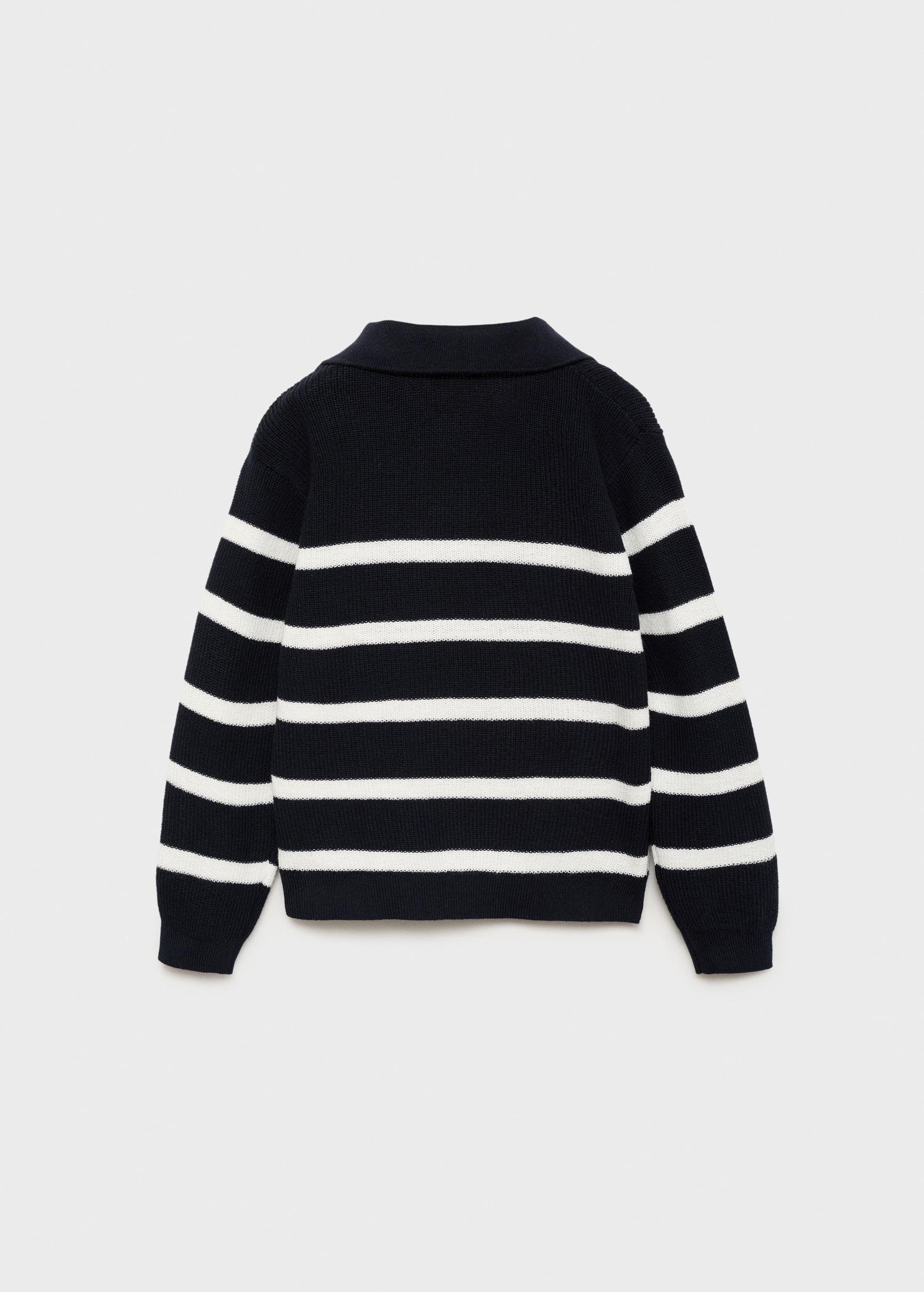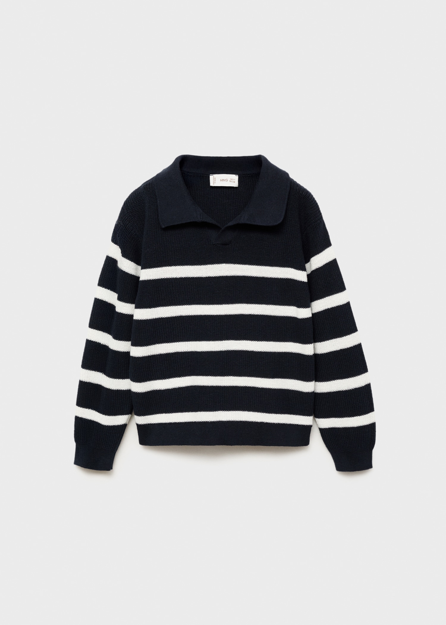 100% cotton fabric. Knitted fabric. Striped design. Ribbed polo collar. Long Sleeve. Ribbed neck, cuffs, and hem. Total look. Back to school