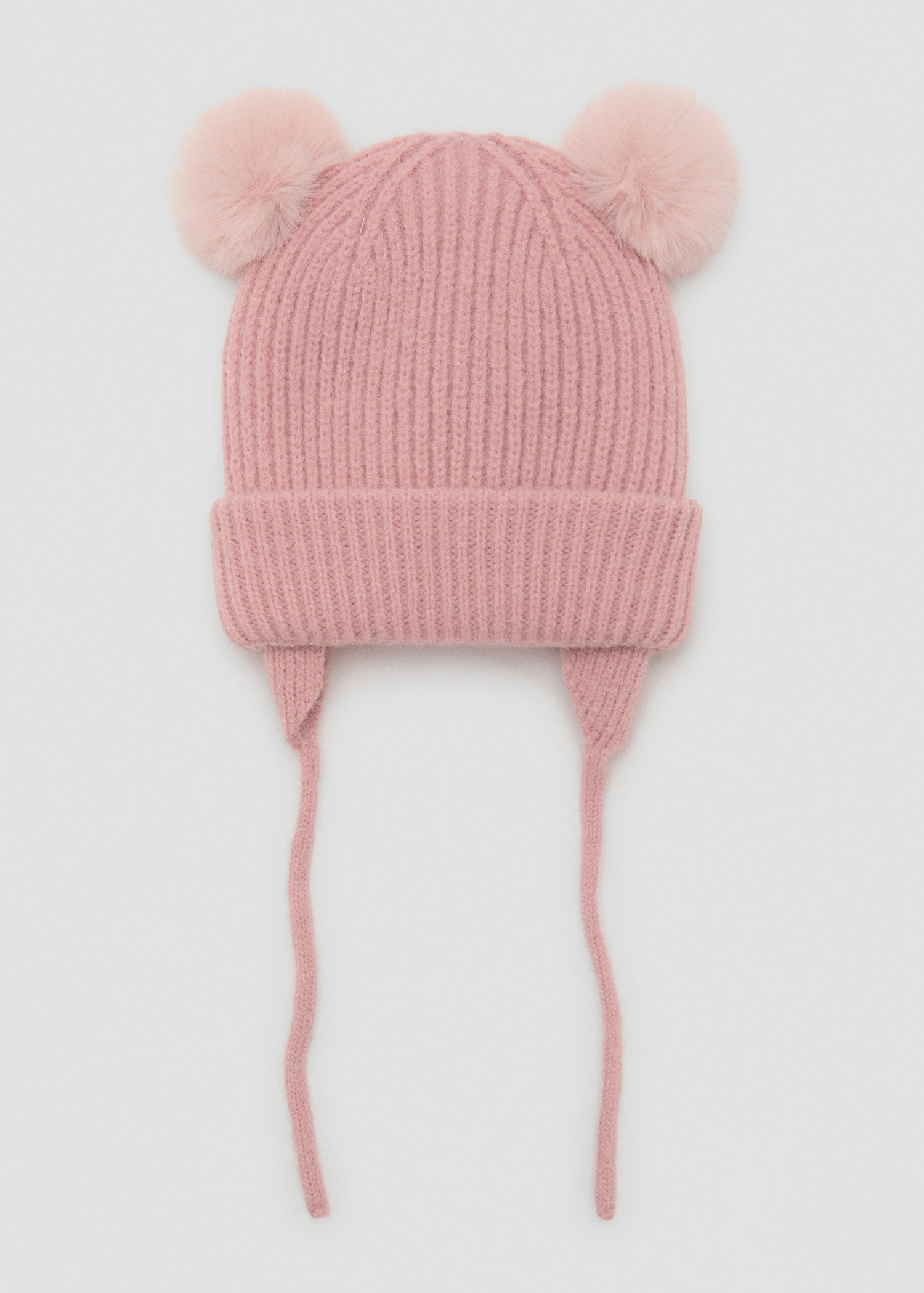 Knitted fabric. Cable knit design. Decorative tassels. Tie closure. Turn-up detail