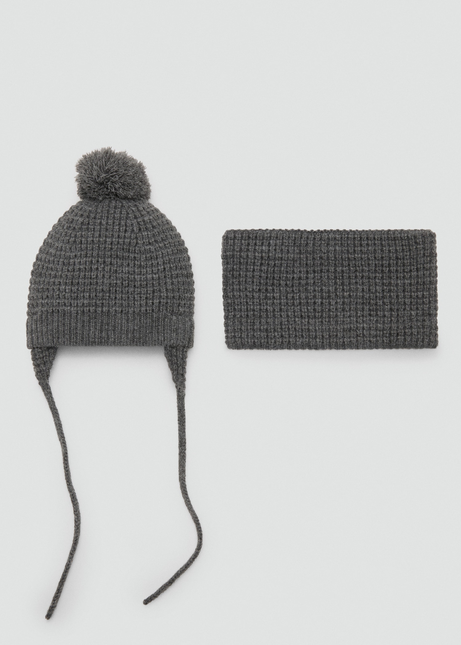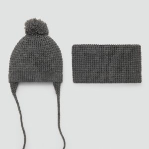 Knitted fabric. Decorative tassel. Tie closure. Available set. Matching hat and scarf available. This hat has a matching scarf available