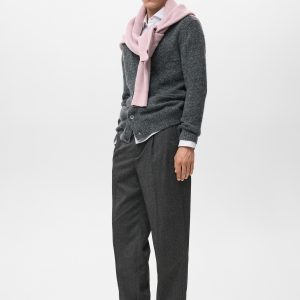 Knit Fabric. Wool-blend fabric. Straight Design. Standard Length. Peak Lapel Collar. Ribbed cuffs. Front button closure