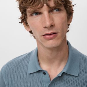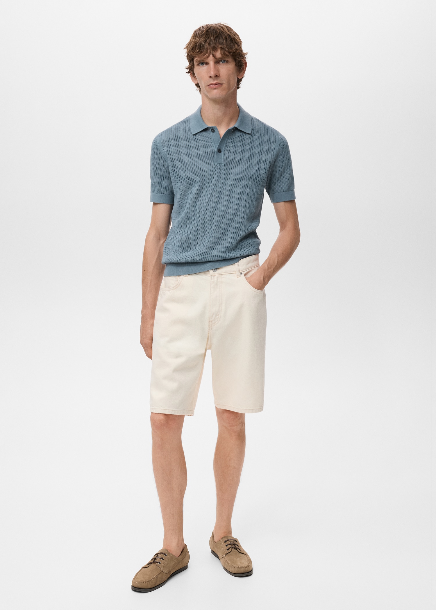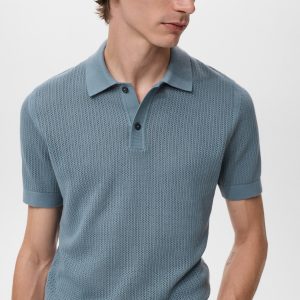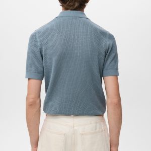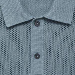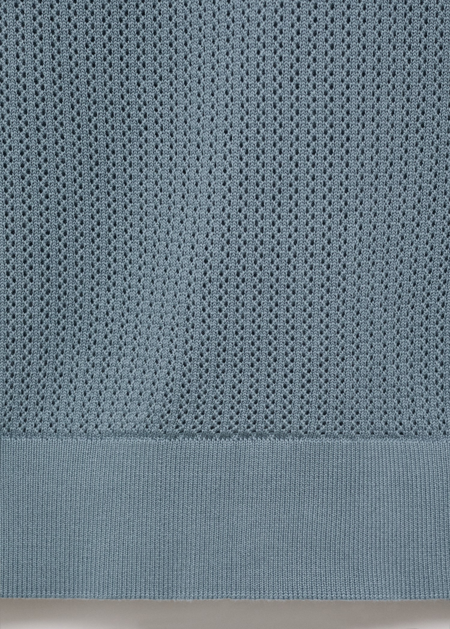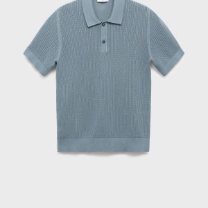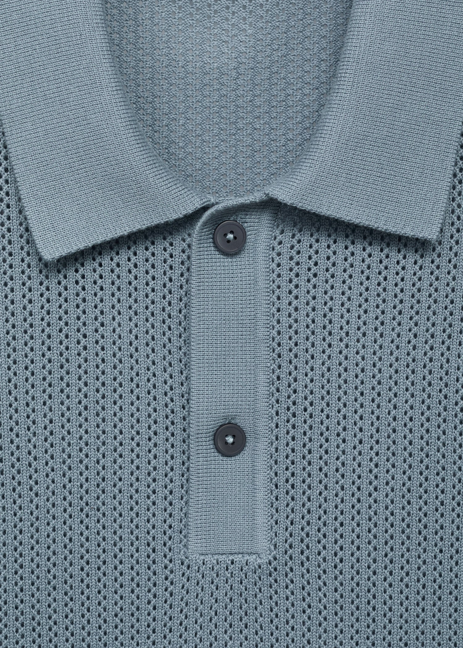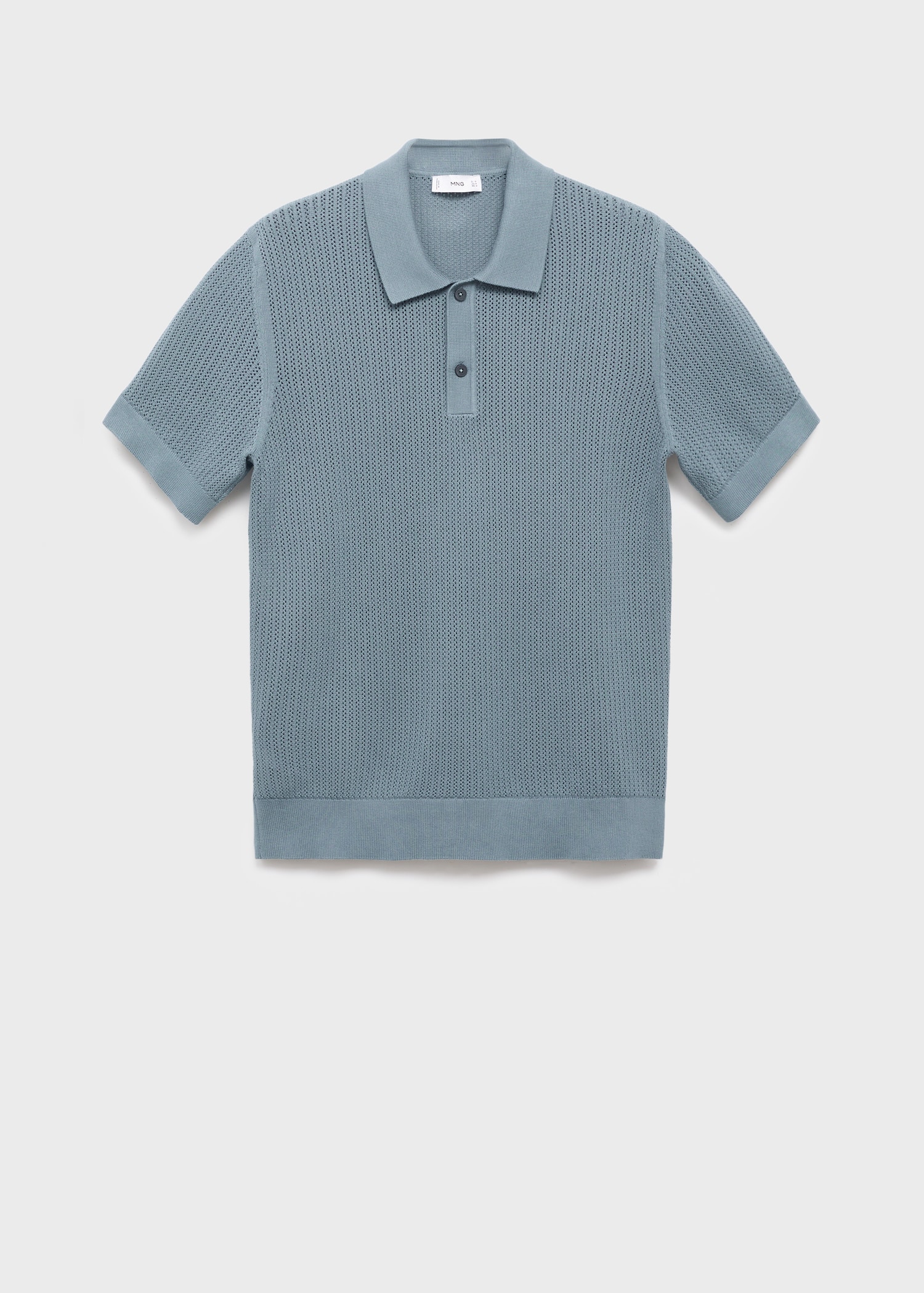 100% cotton fabric. Straight silhouette. Fine-knit fabric showcasing lace pattern accents. Polo collar with button closure. Short sleeves. Ribbed collar, sleeves and hem