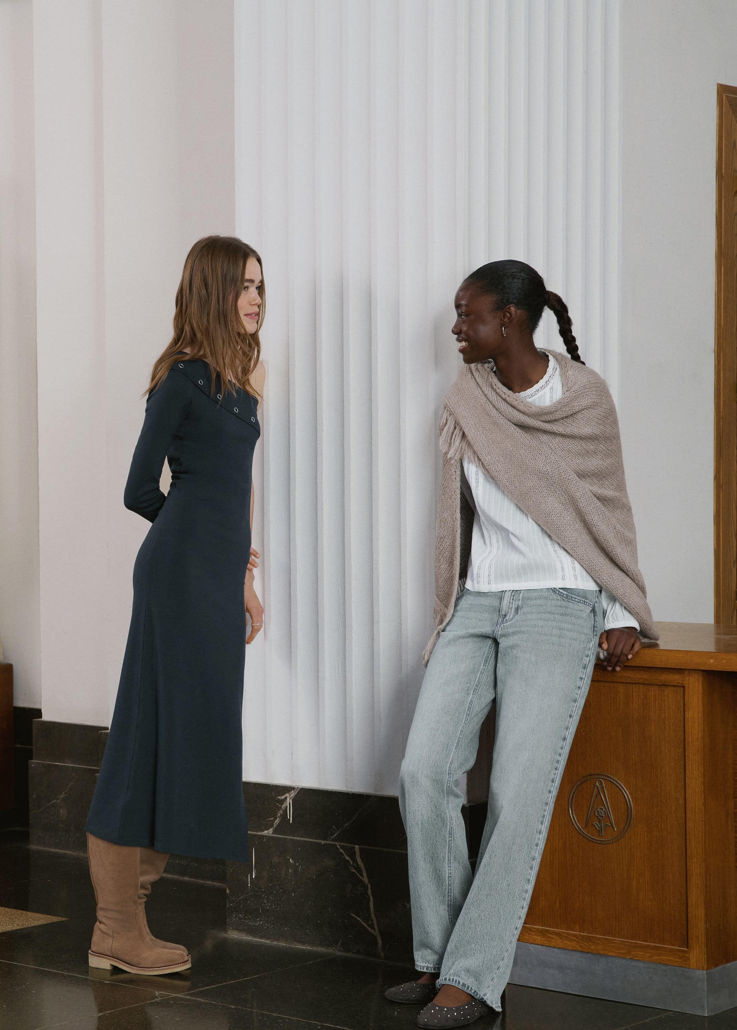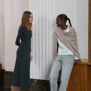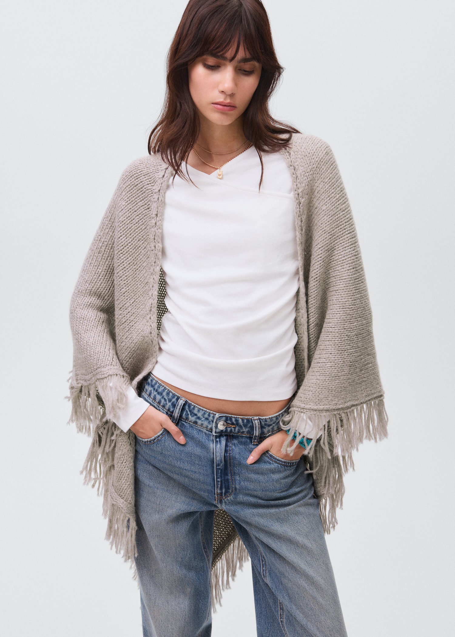 Knitted poncho with tassels
