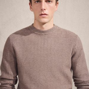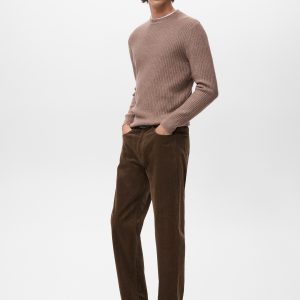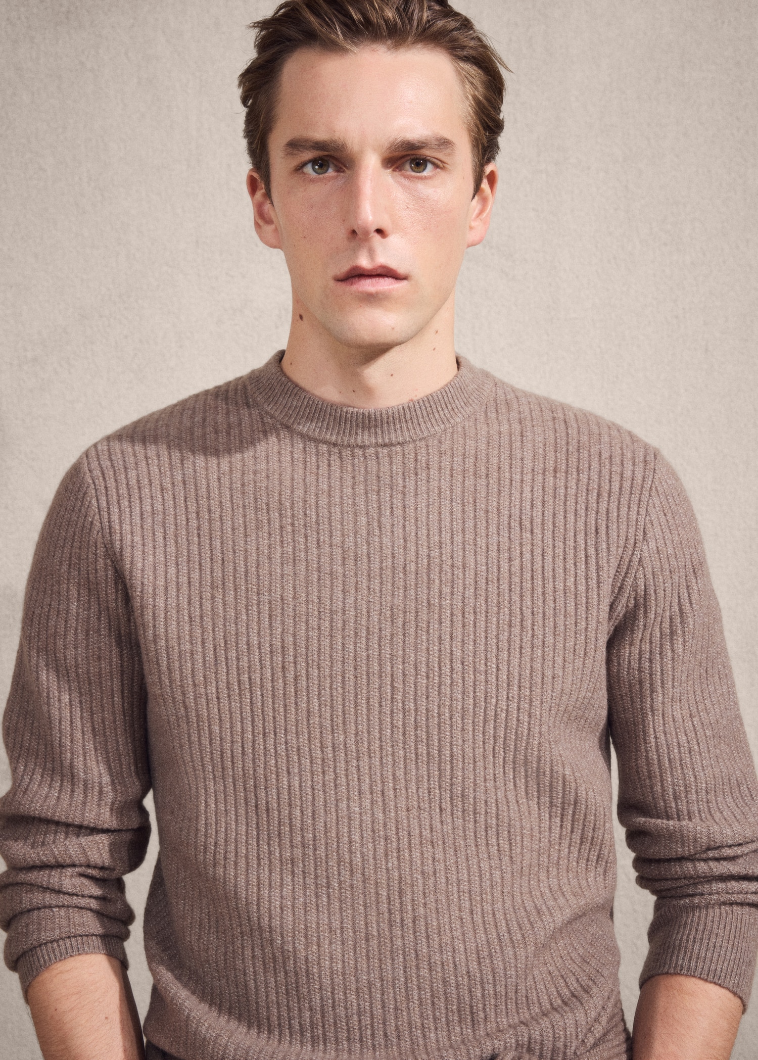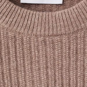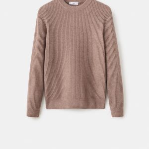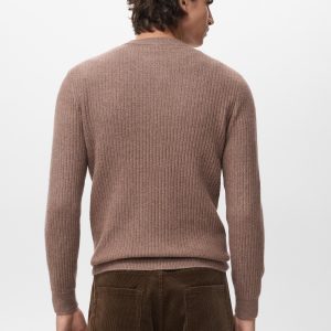 Straight silhouette. Cable knit fabric. Crew neck. Ribbed finishes. Long sleeves with elastic cuffs