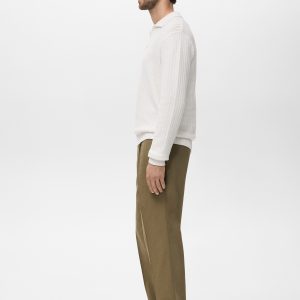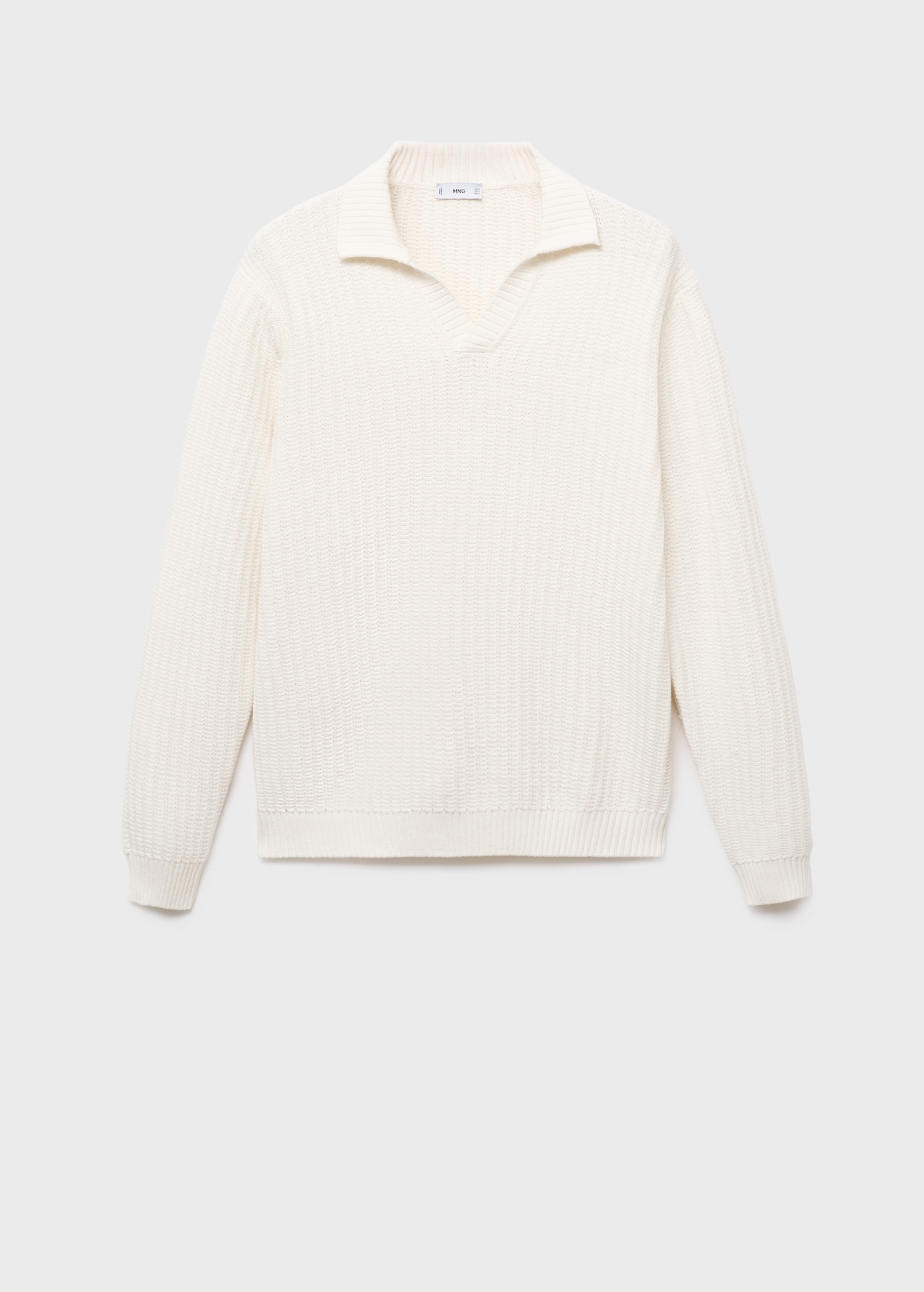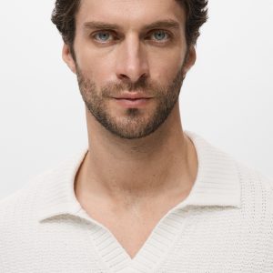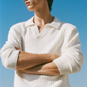 100% cotton fabric. Straight silhouette. Structured knit fabric. Polo shirt with buttonless collar. Long Sleeve. Ribbed finishes