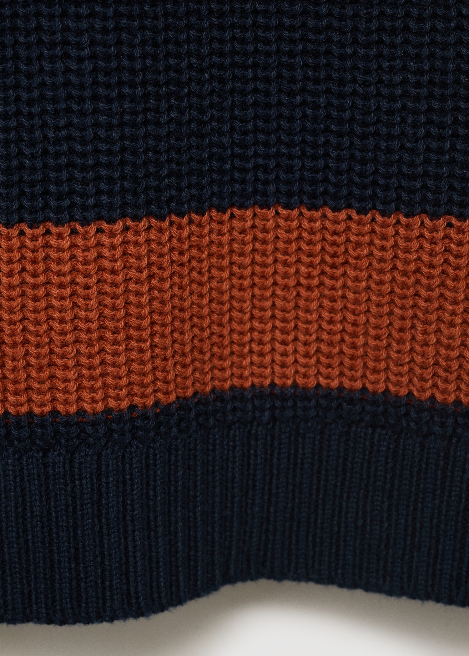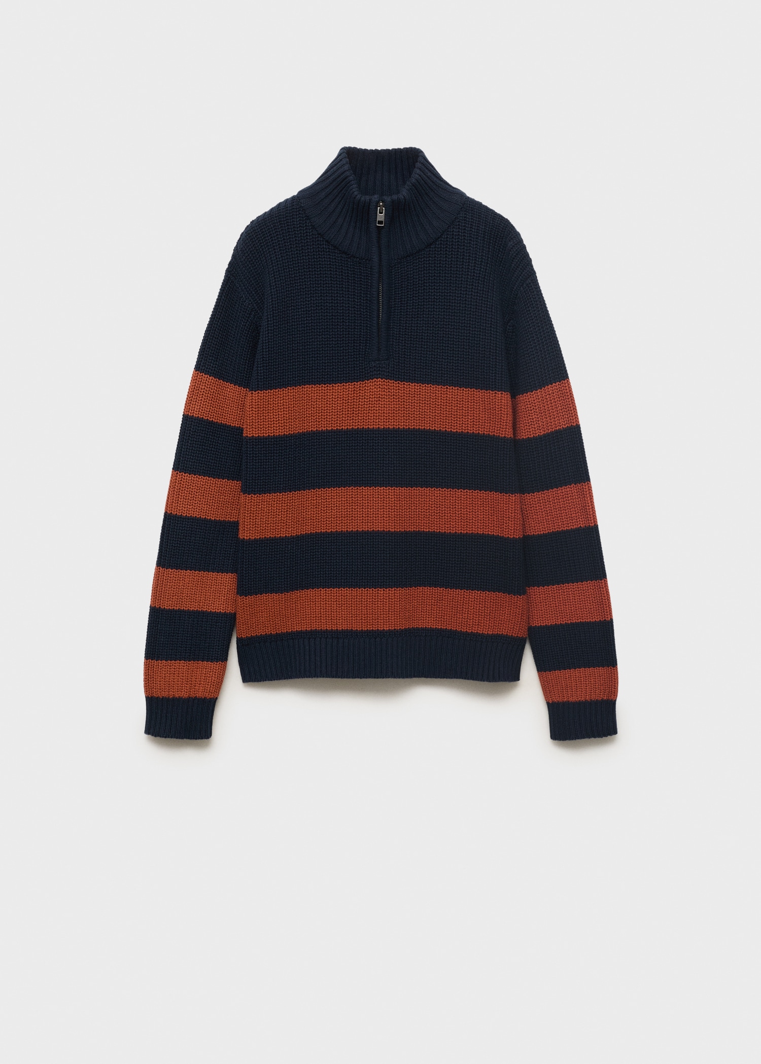 100% cotton fabric. Knitted fabric. Straight Design. Striped design. Perkins neck with zipper. Long Sleeve