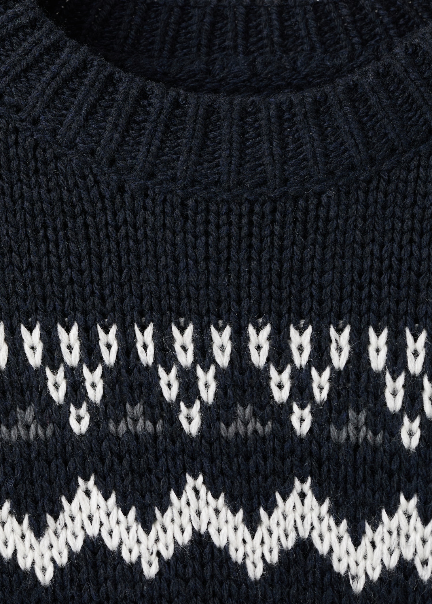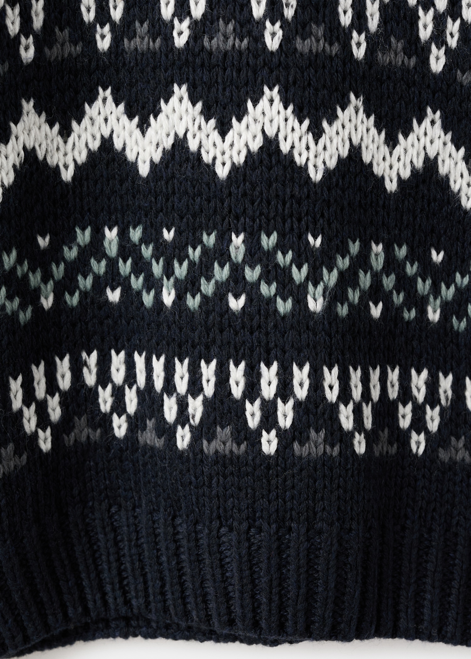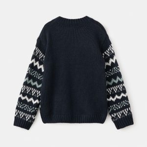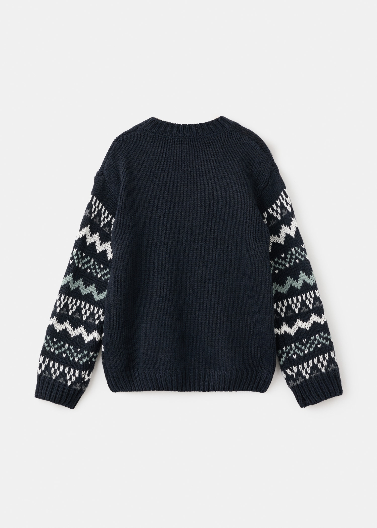 Knitted fabric. Straight Design. Embroidered trim. Crew neck. Long Sleeve. Christmas Collection