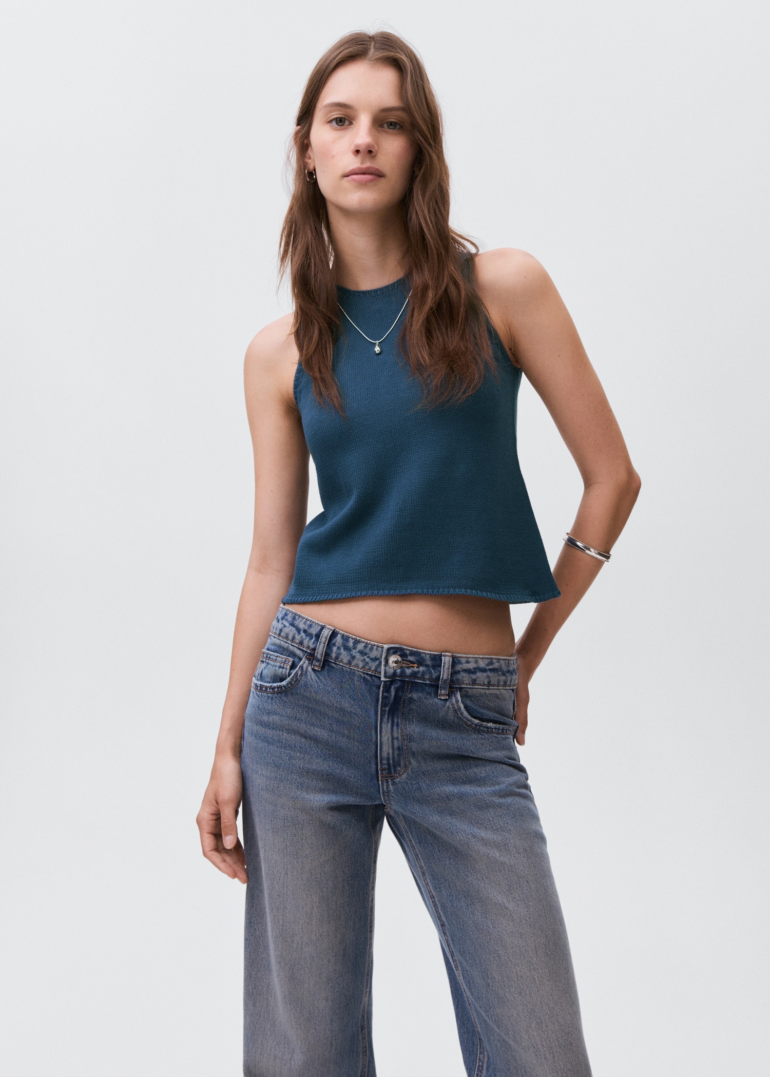 Knitted top with drawstring