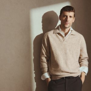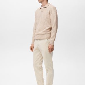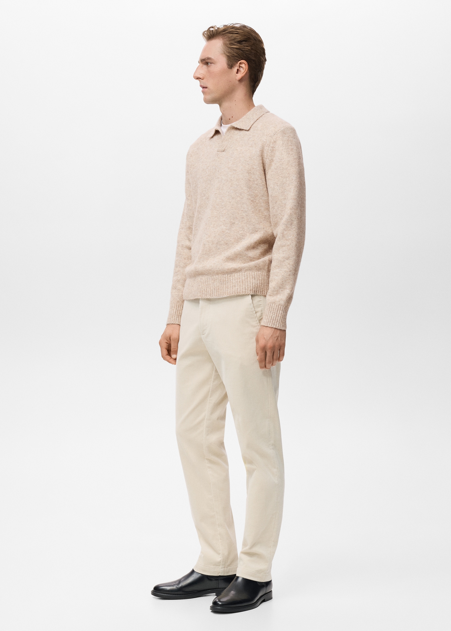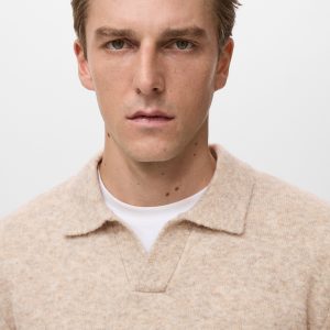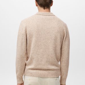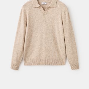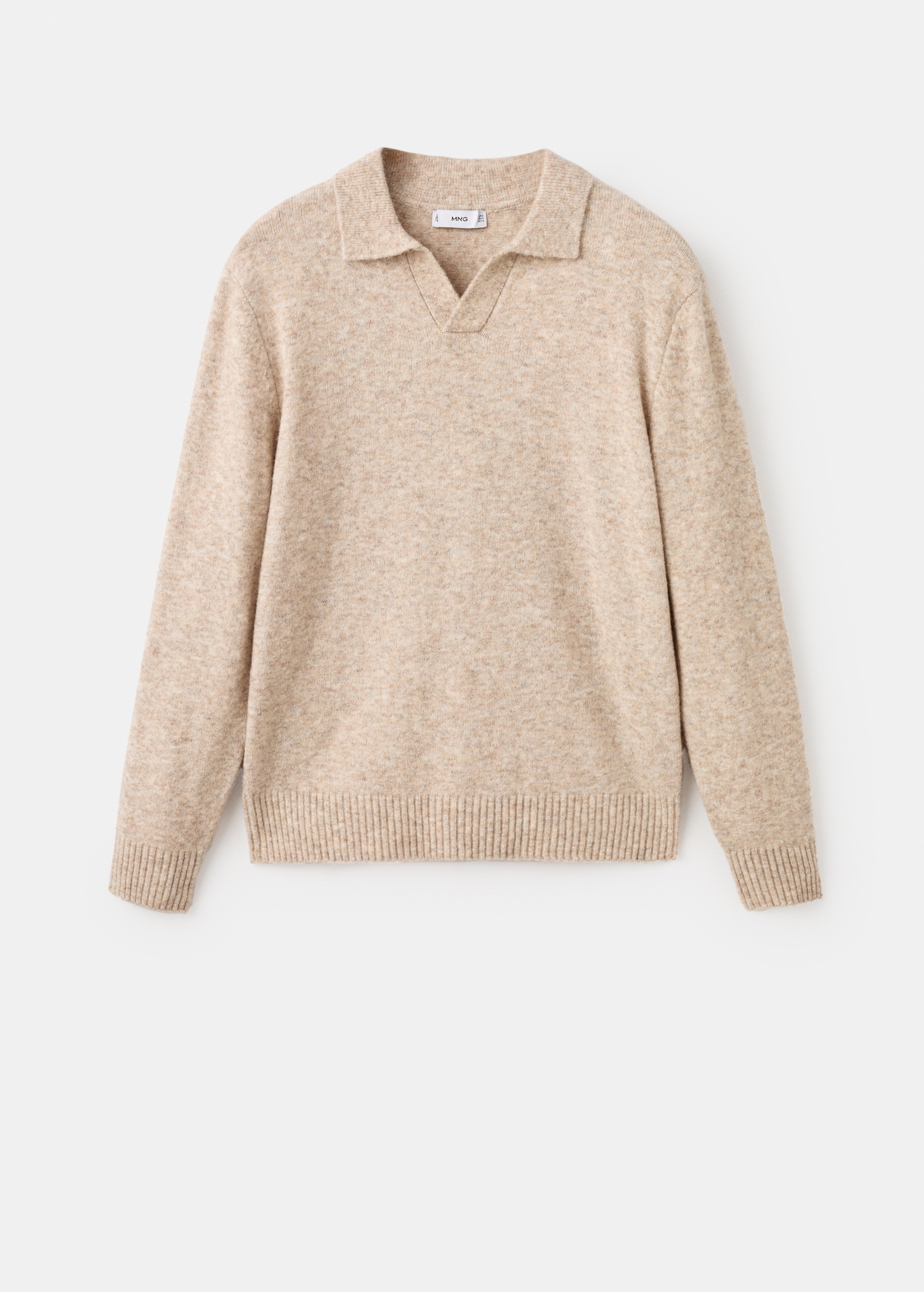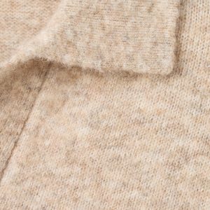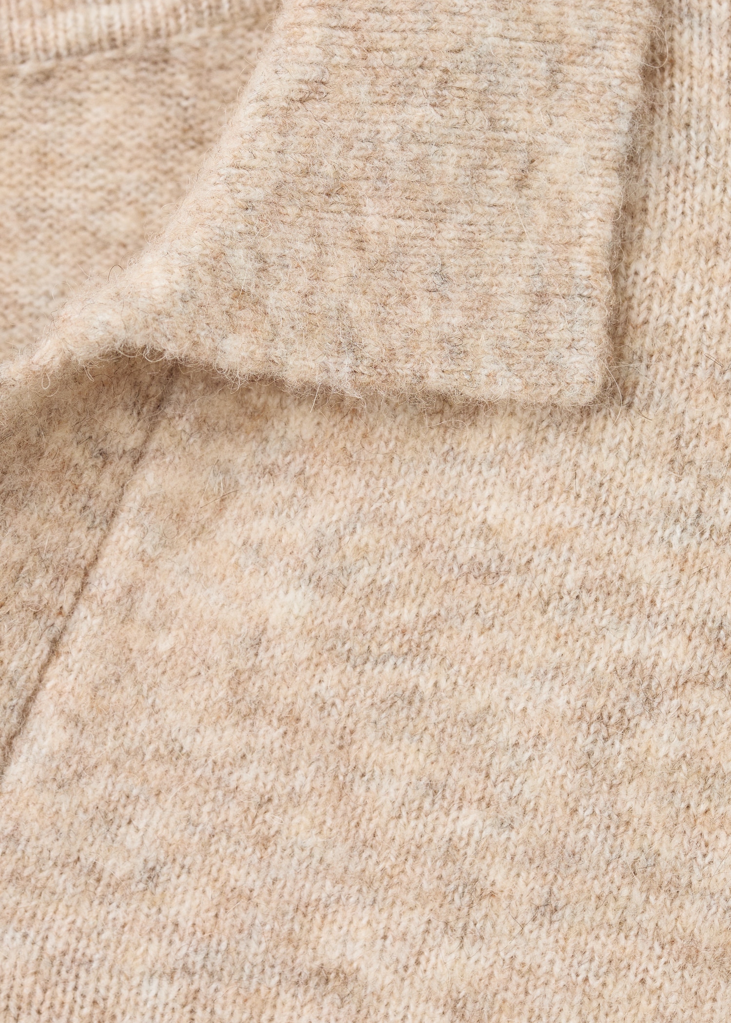 Straight Design. Wool mix fabric. Polo collar. Long Sleeve. Straight hem. Ribbed cuffs and hem