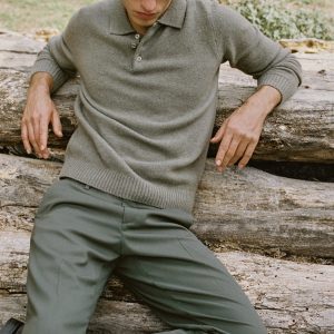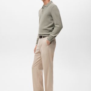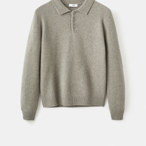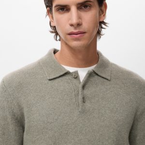 Wool mix fabric. Straight Design. Standard Length. Polo collar with button closure. Ribbed cuffs and hem