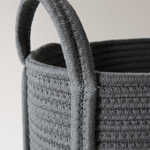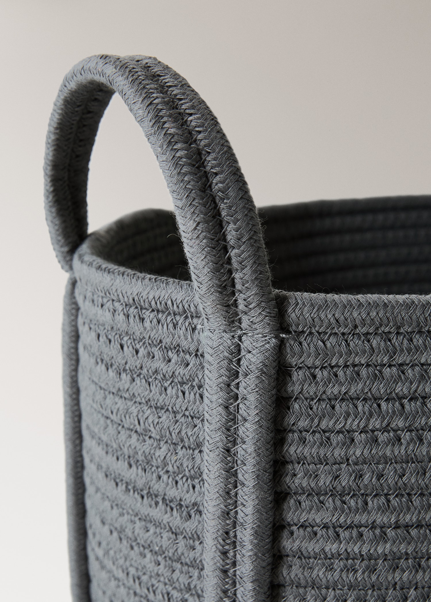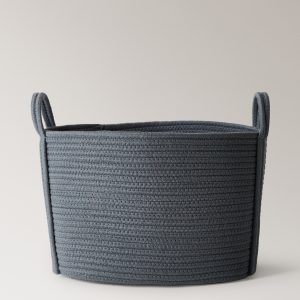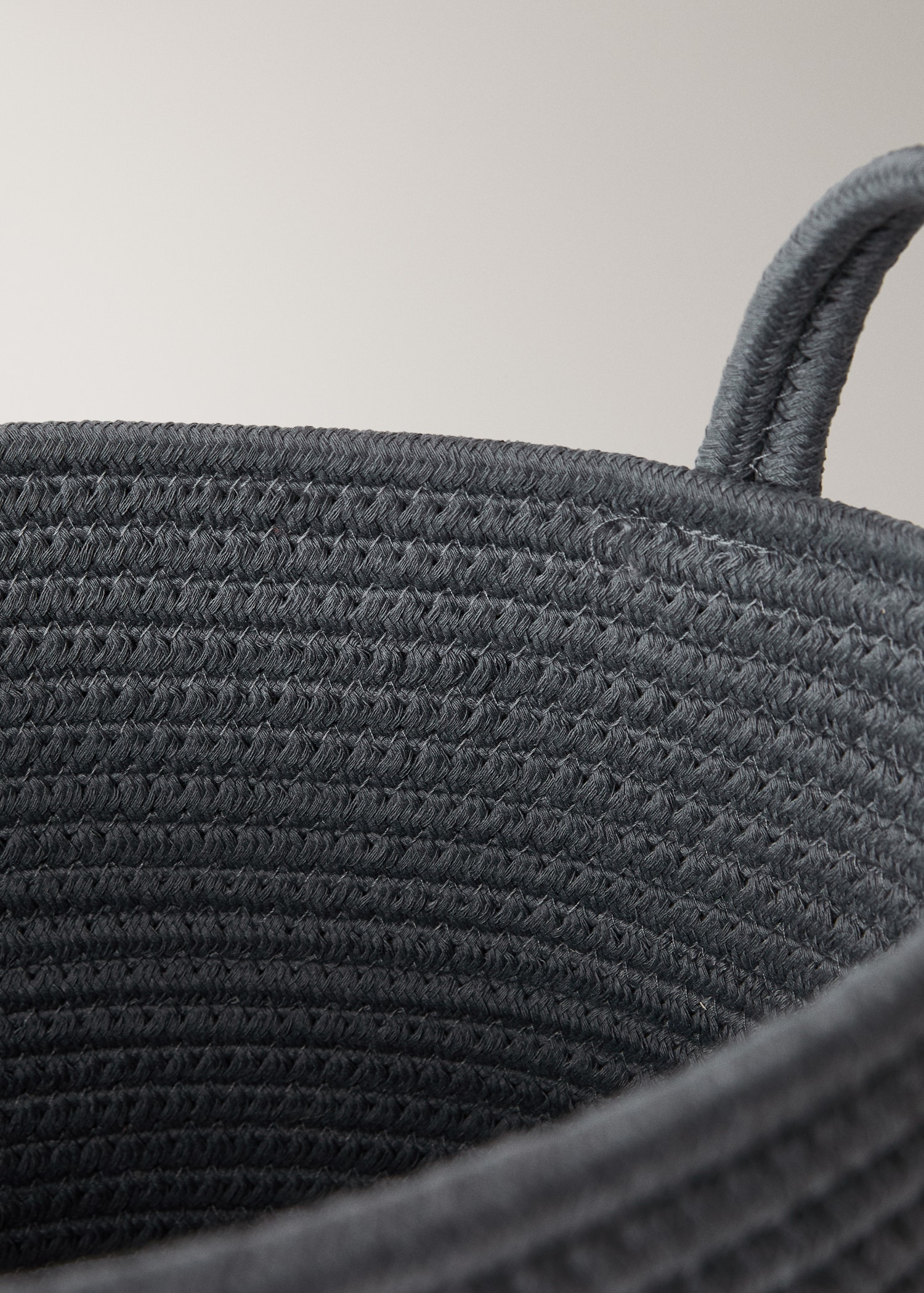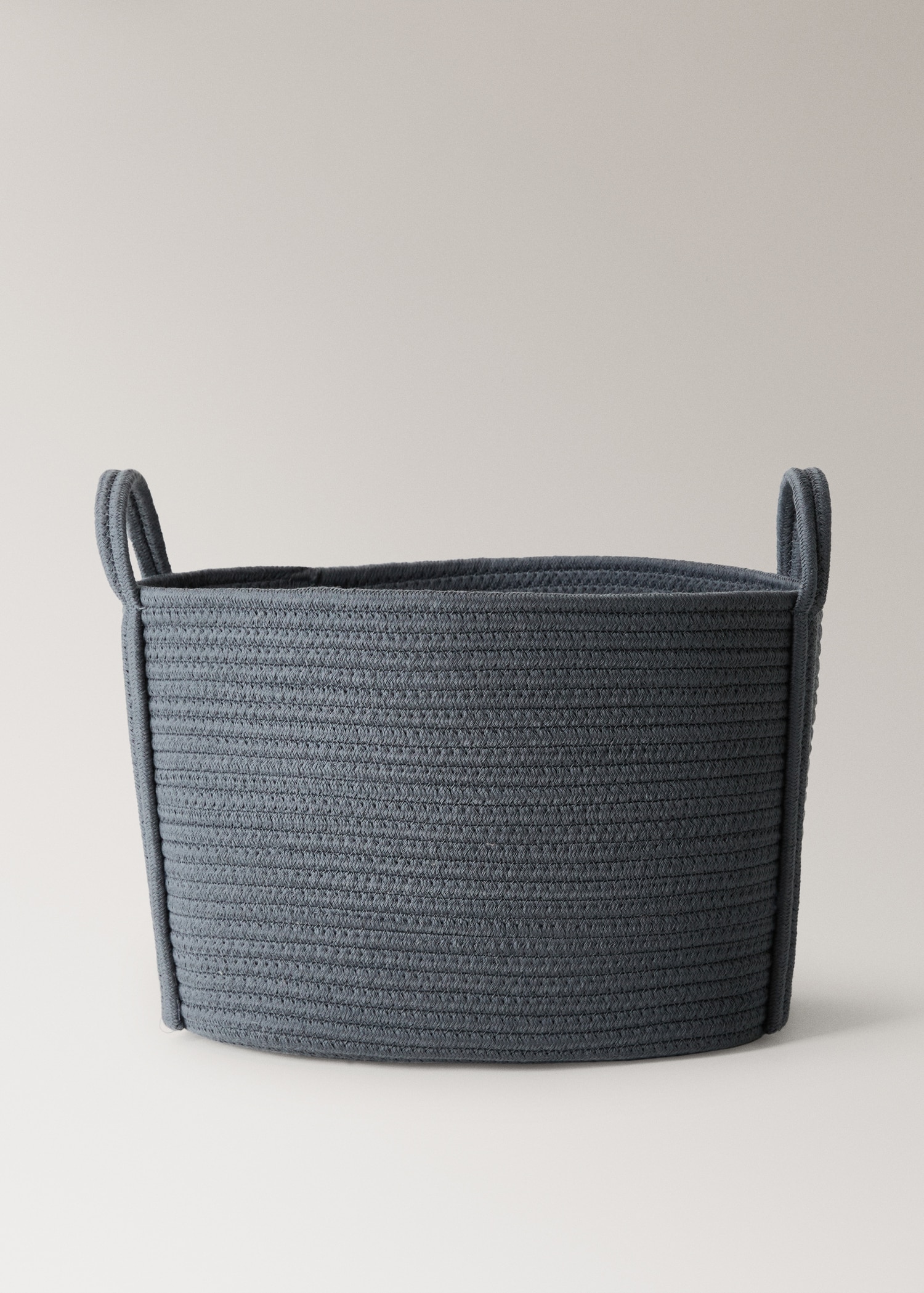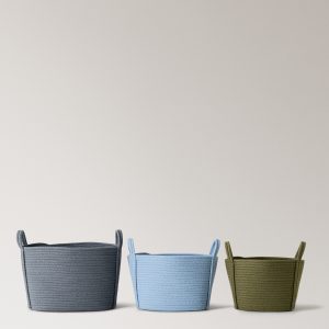 100% cotton fabric. Dimensions: 35x25x25cm. Two handles. The profile of the baskets is low and wide, giving them a stable appearance and making them ideal for storing and organizing items in a practical way. Each basket is equipped with two sturdy handles at both larger ends, providing a comfortable and secure grip and allowing them to be moved easily from one place to another. The design of the baskets is not only practical but also decorative, allowing them to blend harmoniously into different environments and decorative styles. Coordinates with more products from the collection. 100% Cotton. Combines elegance and originality in any space