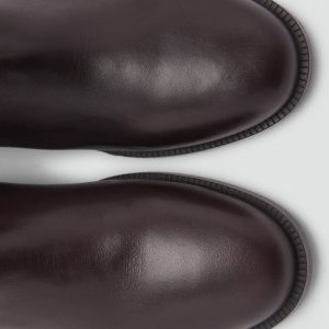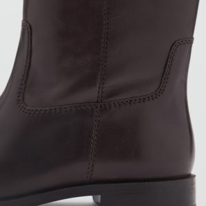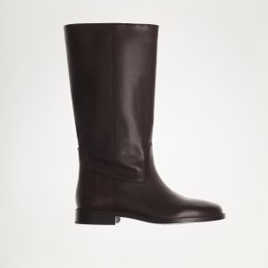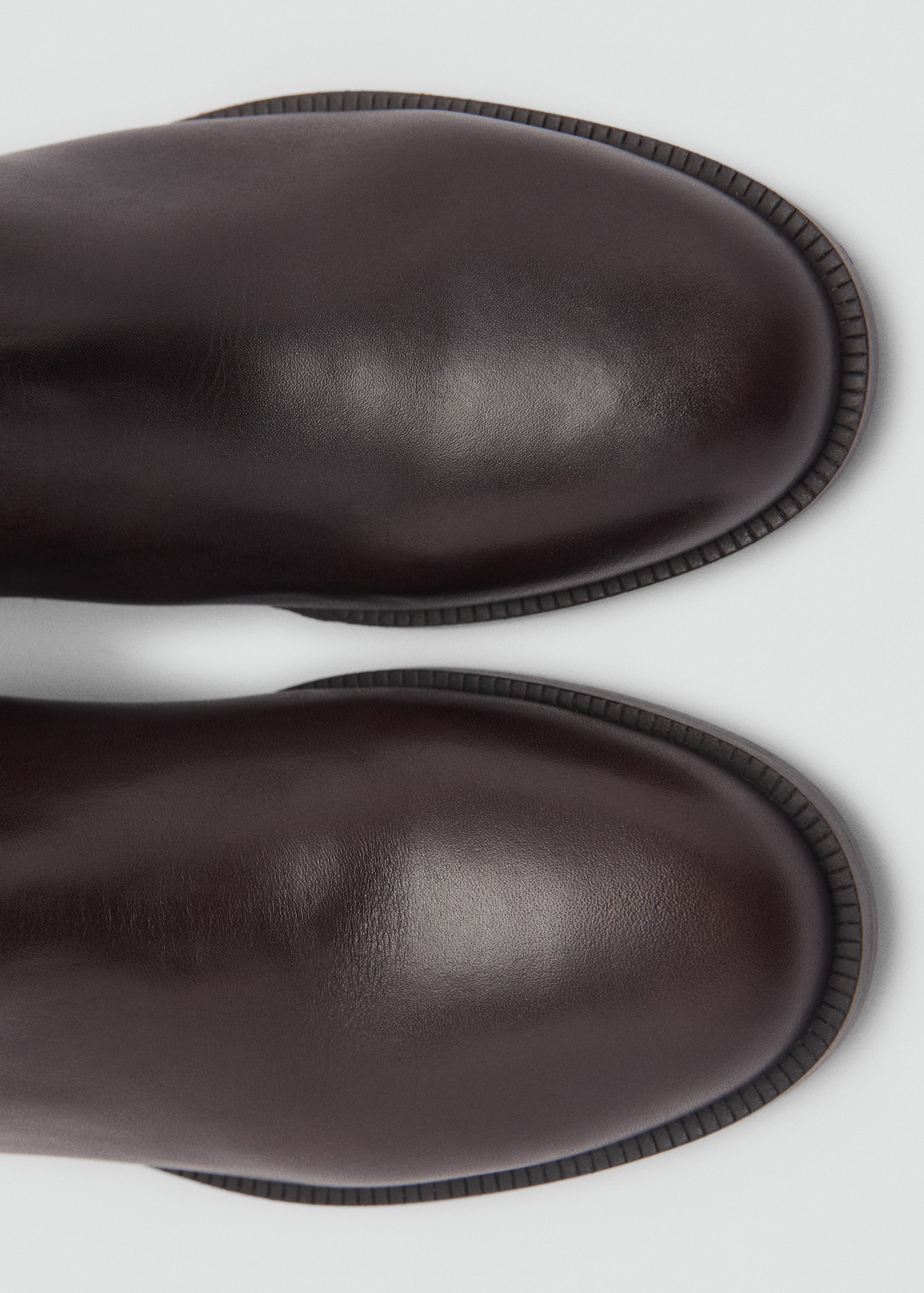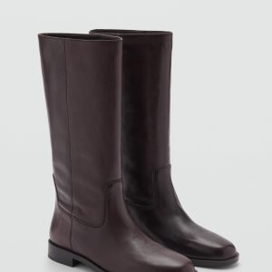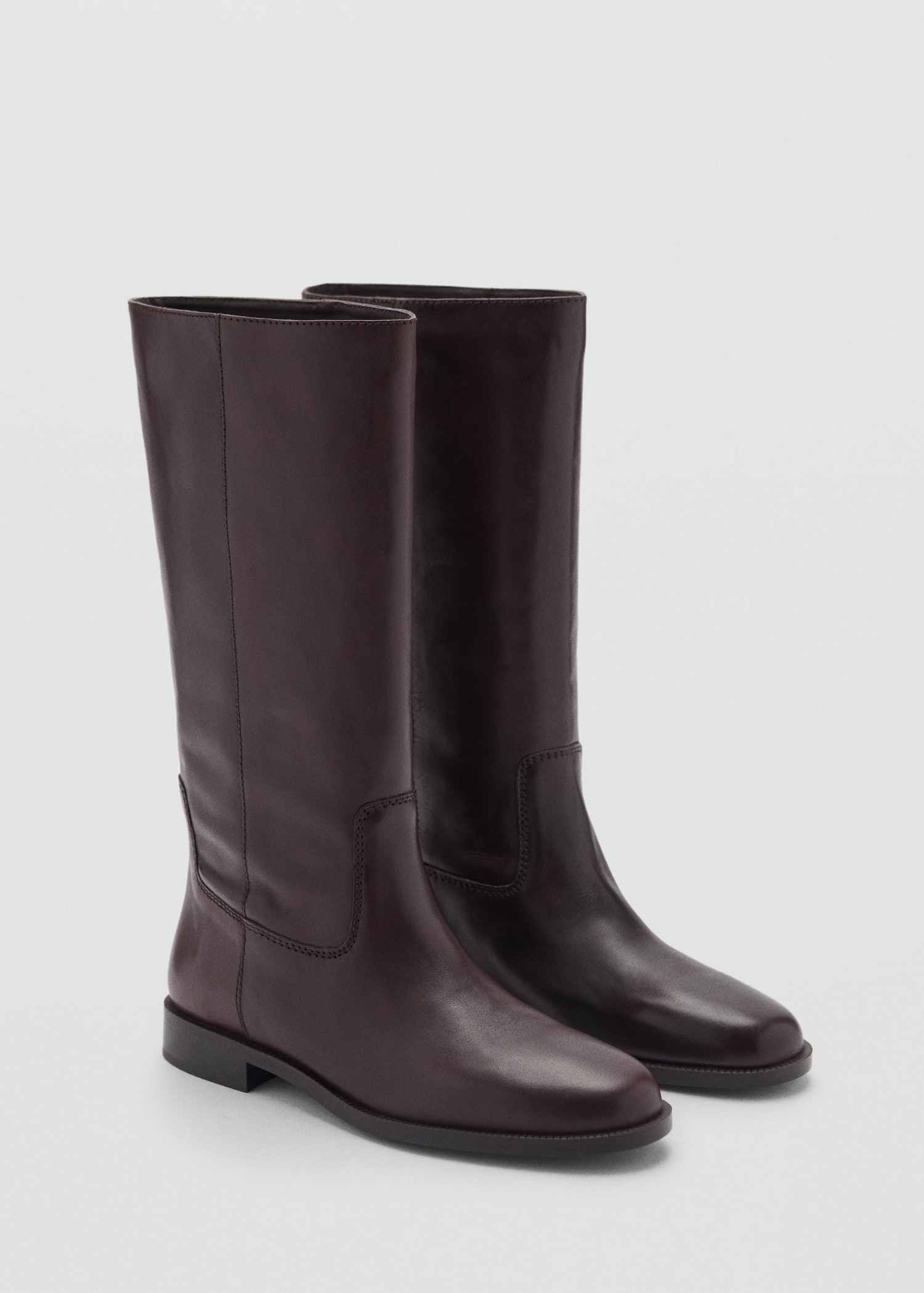 100% bovine leather. Flat. Round toe. High shaft. No closure. Inner lining