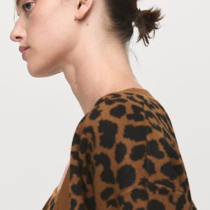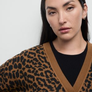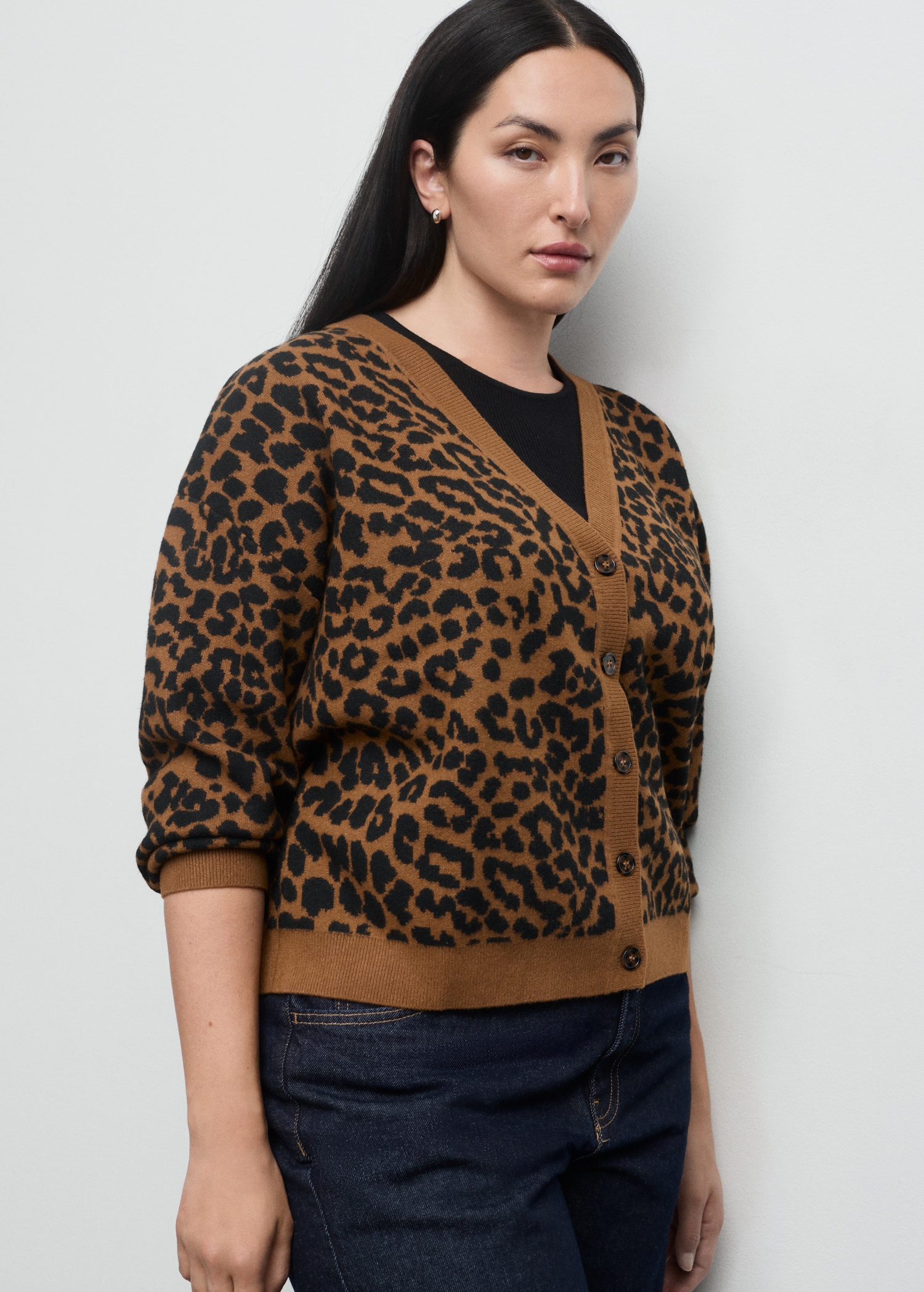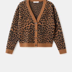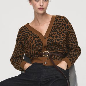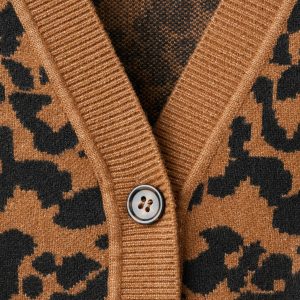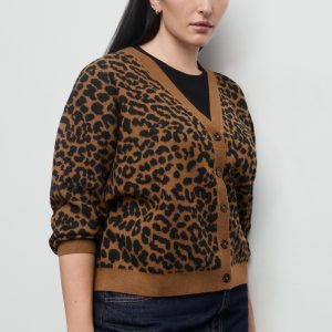 Crafted from fine-knit fabric, this straight design features a leopard print. It includes a V-neck and long sleeves, with a front button fastening. Available in Plus Size. Comes with a matching top