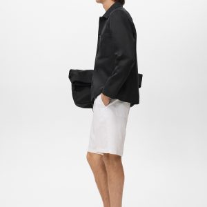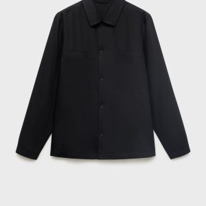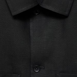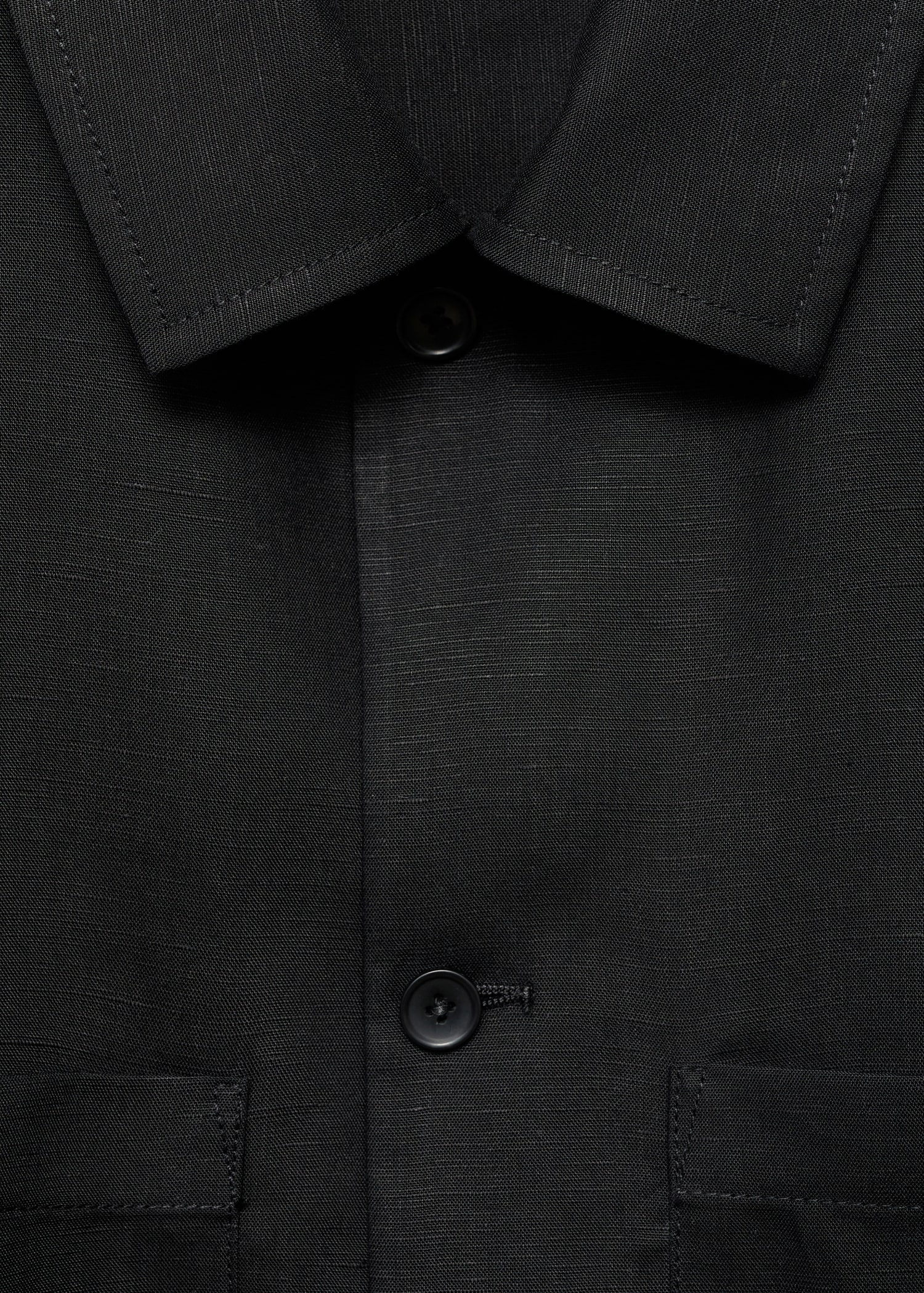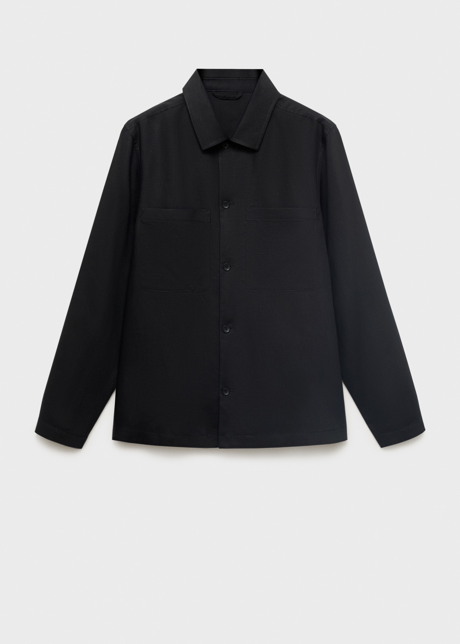 Linen and lyocell blend fabric. Straight Design. Straight Silhouette. Two front patch pockets. Shirt collar. Front button closure
