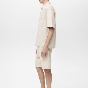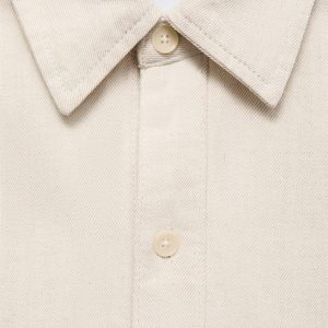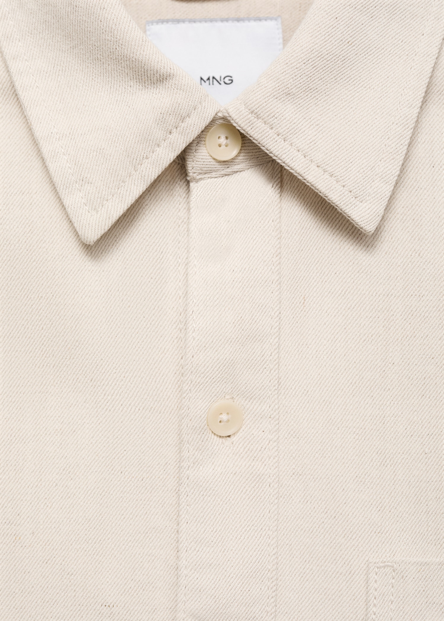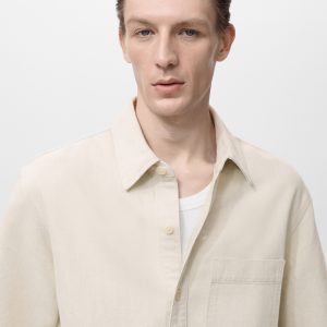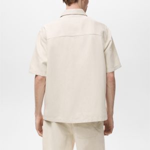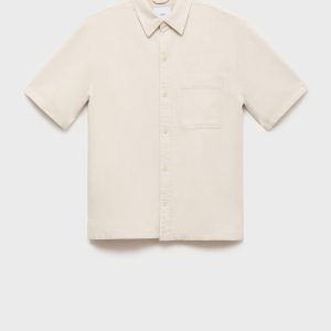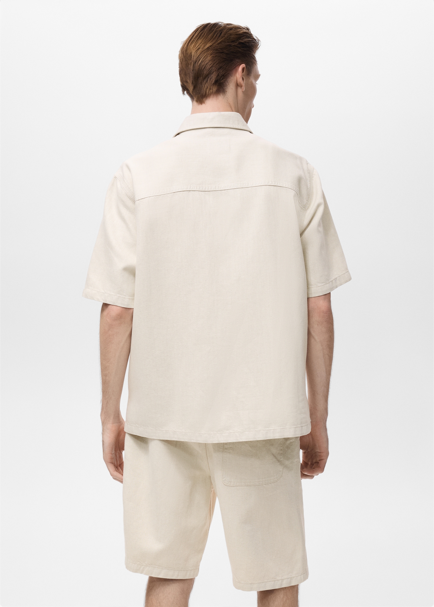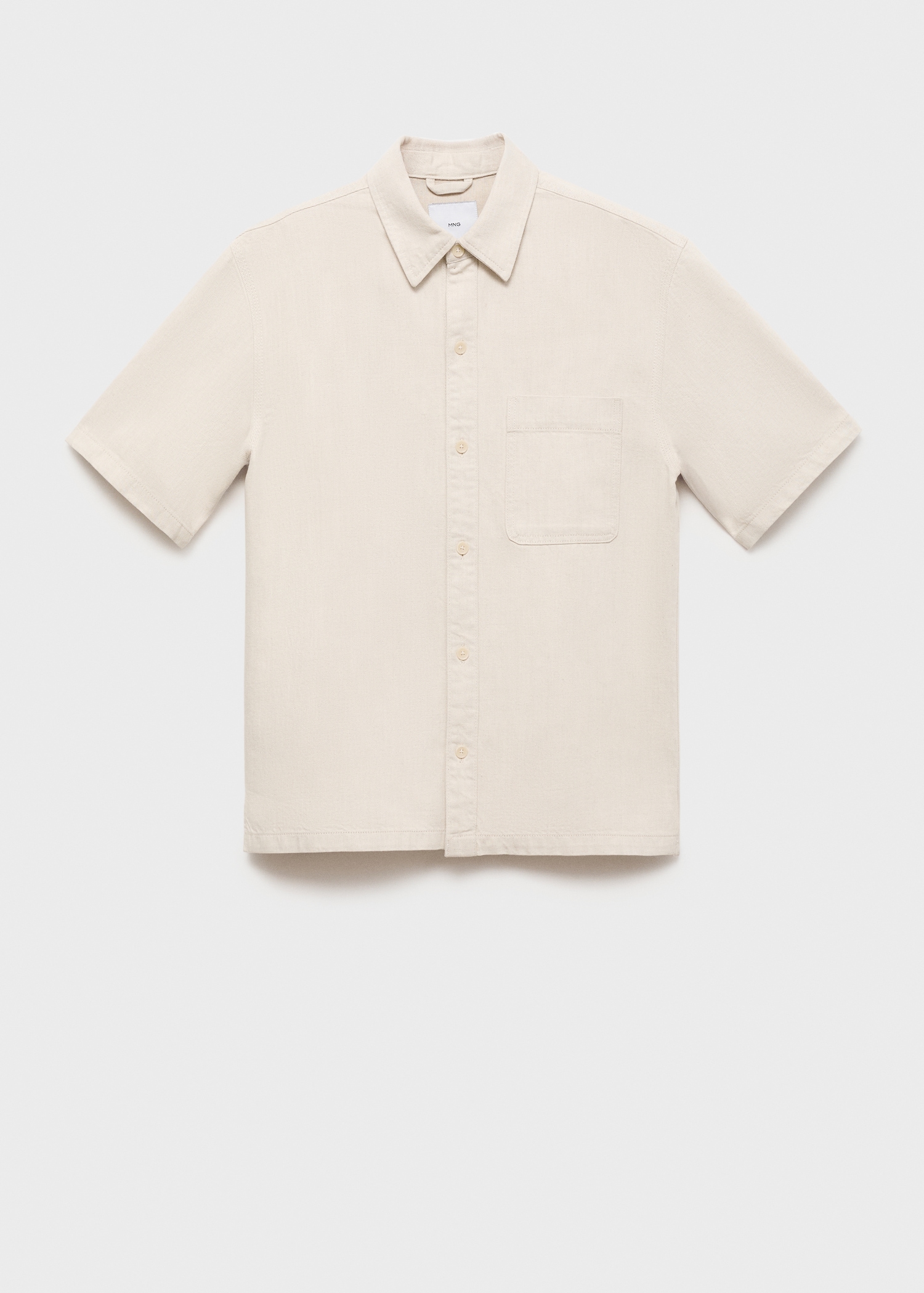 Regular fit. Linen and cotton blend fabric. Shirt collar. Front button closure. Patch pocket on the chest. Short sleeve. Straight hem. Small side slits at the hem