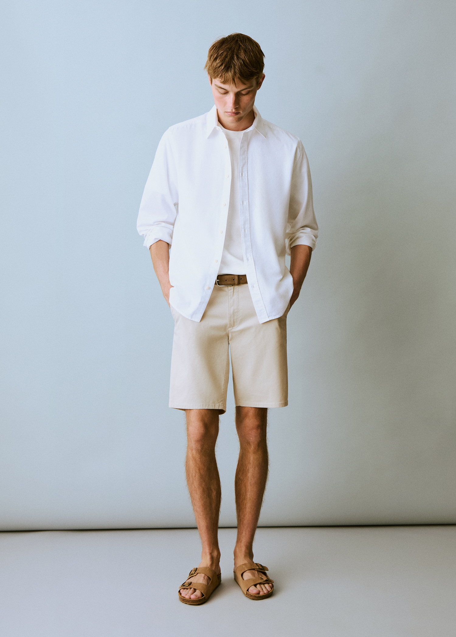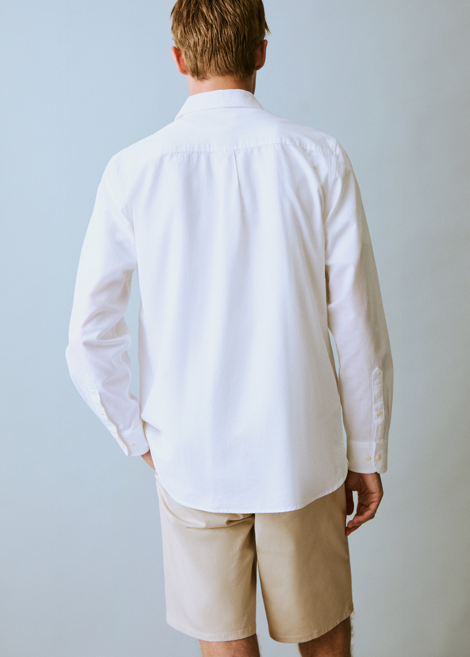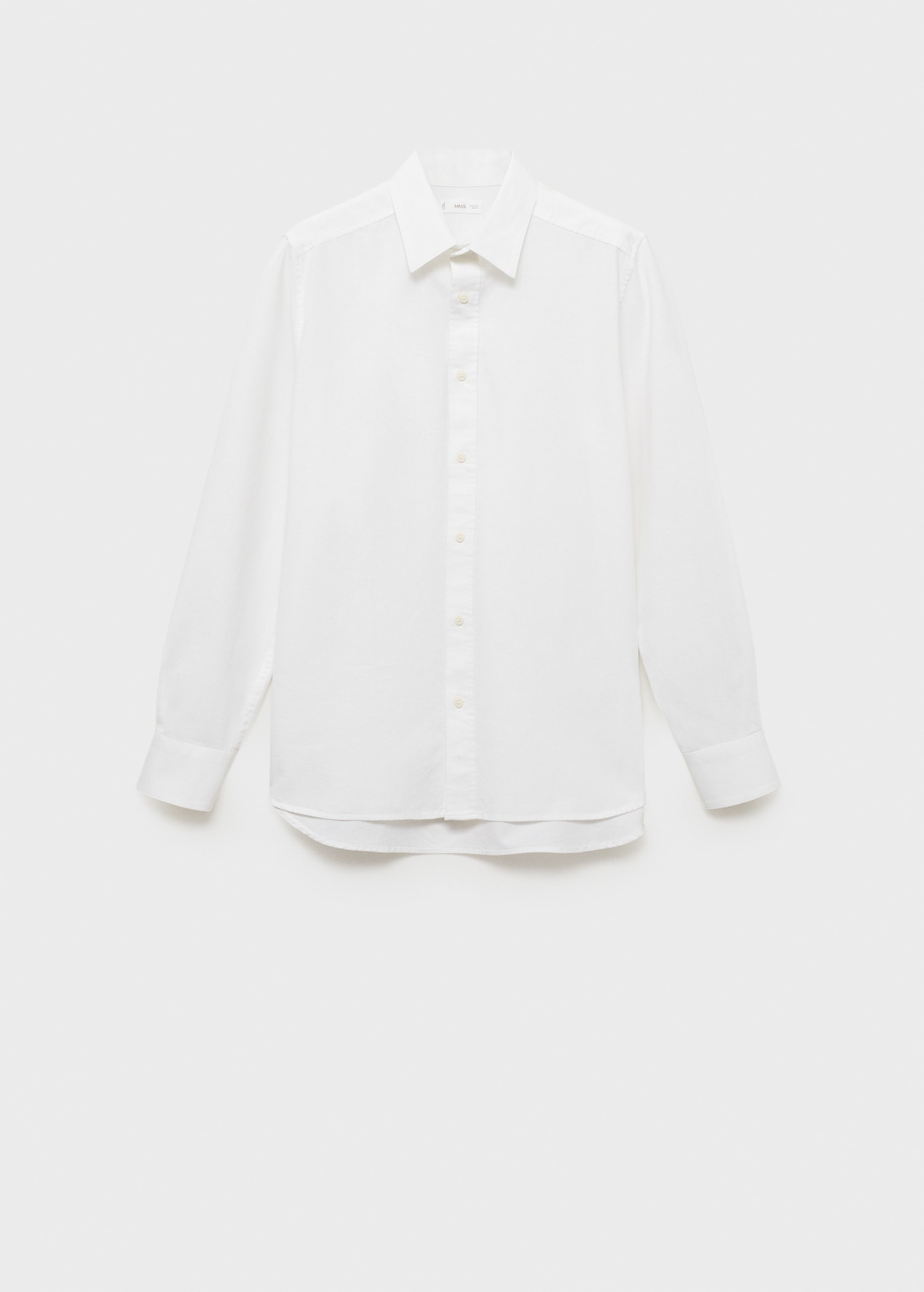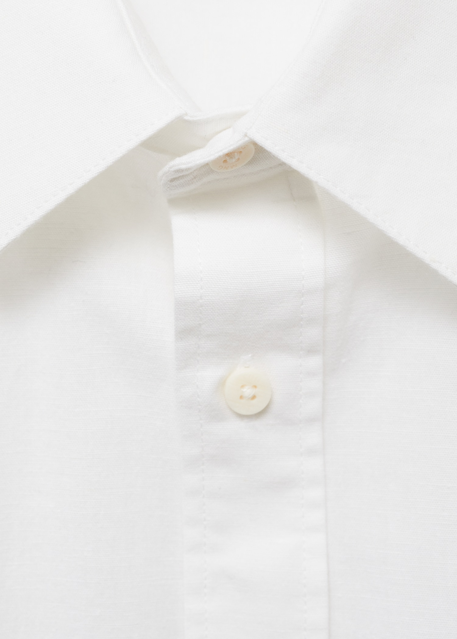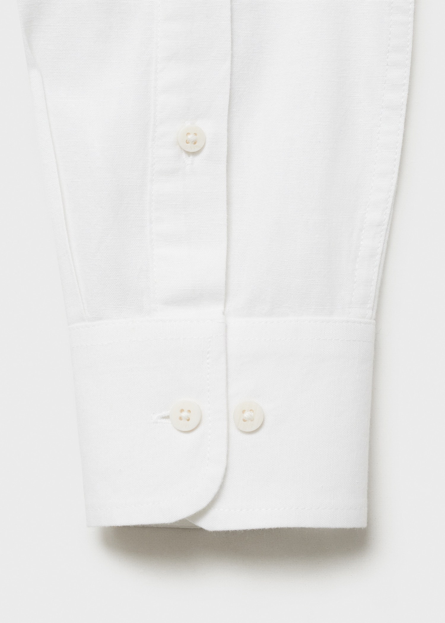 Linen fabric. Cotton fabric. Straight Design. Oxford style. Shirt collar. Buttoned cuffs. Long Sleeve. Front button closure